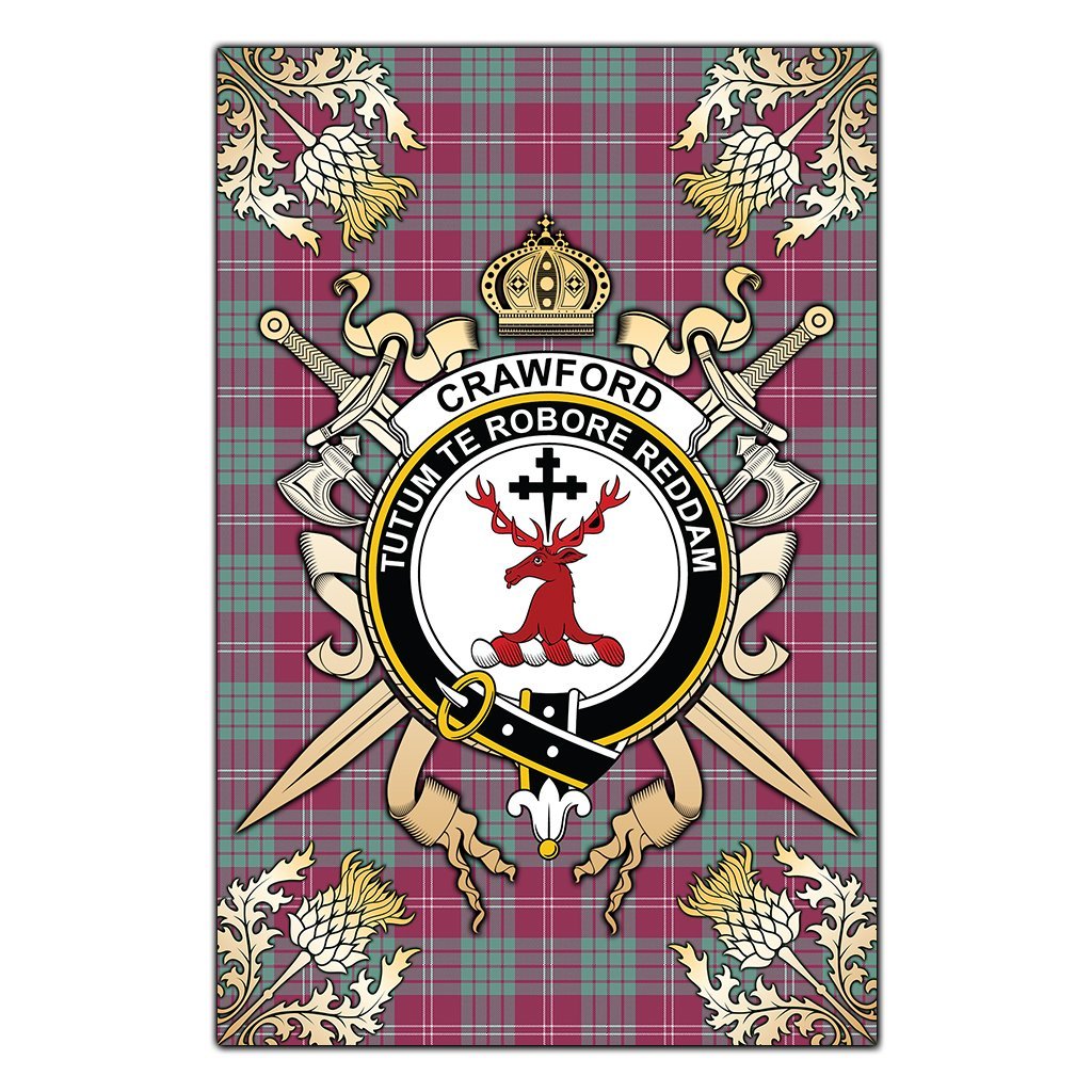 Crawford Ancient Tartan Crest Black Garden Flag - Gold Thistle Style
