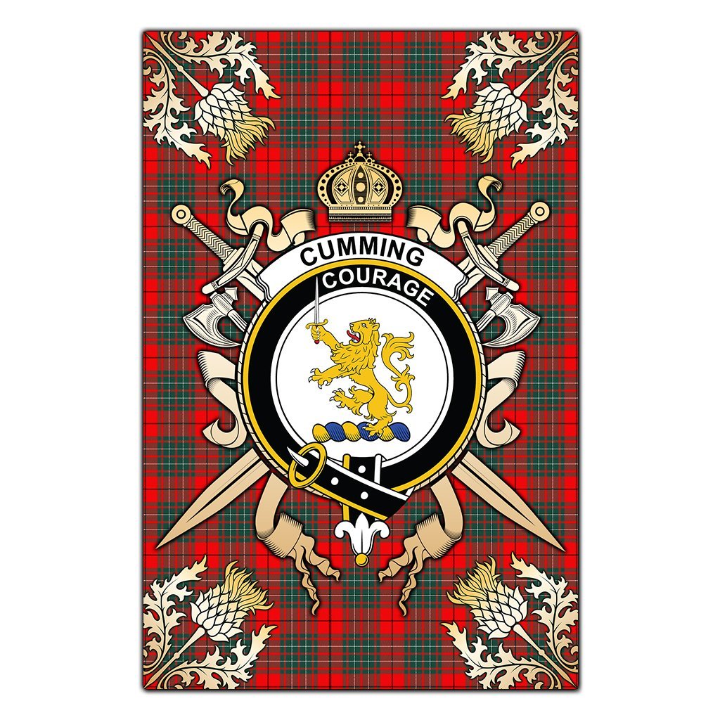 Cumming Modern Tartan Crest Black Garden Flag - Gold Thistle Style