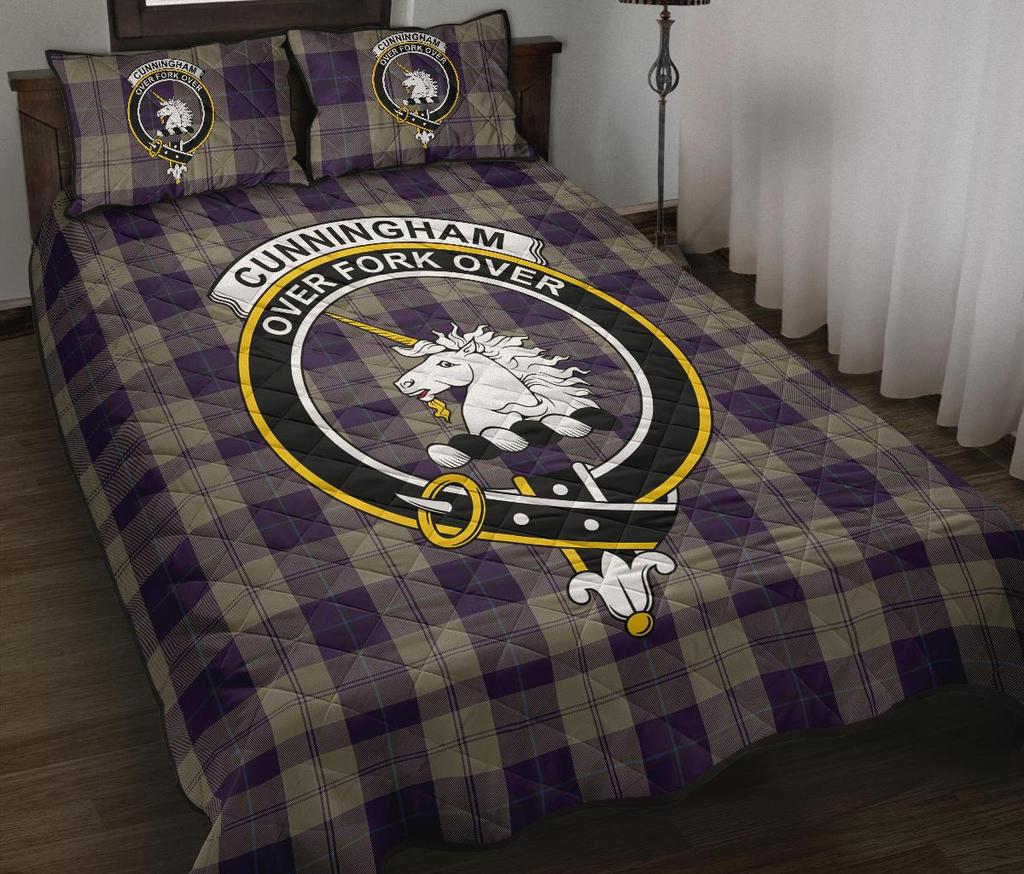 Cunningham Dress Blue Tartan Crest Quilt Bed Set