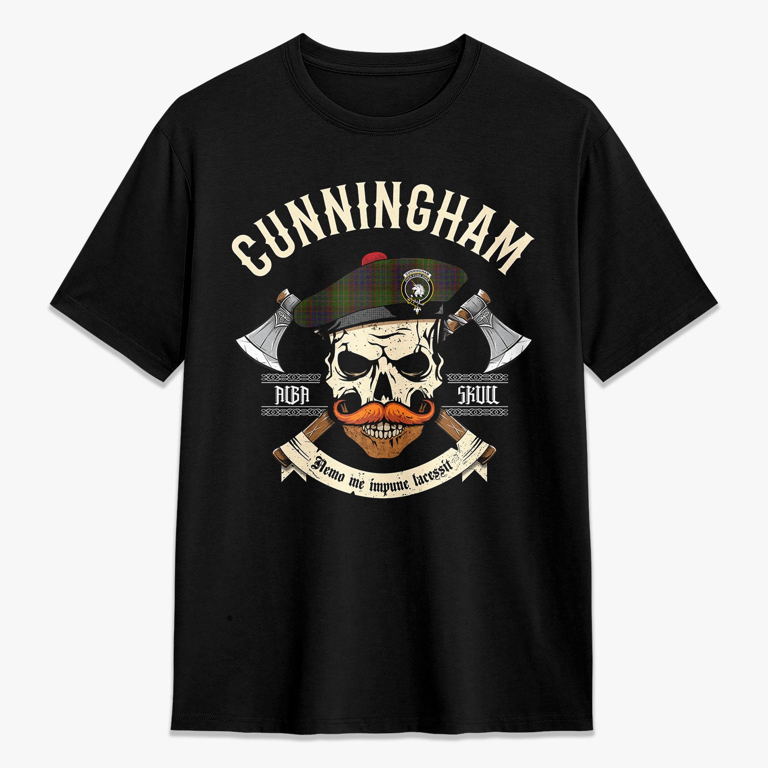Cunningham Hunting Modern Tartan Crest 2D T-shirt - Alba Skull Style,