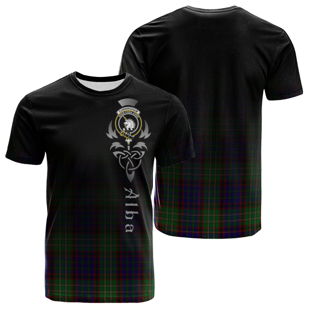 Cunningham Hunting Tartan Crest T-shirt - Alba Celtic Style