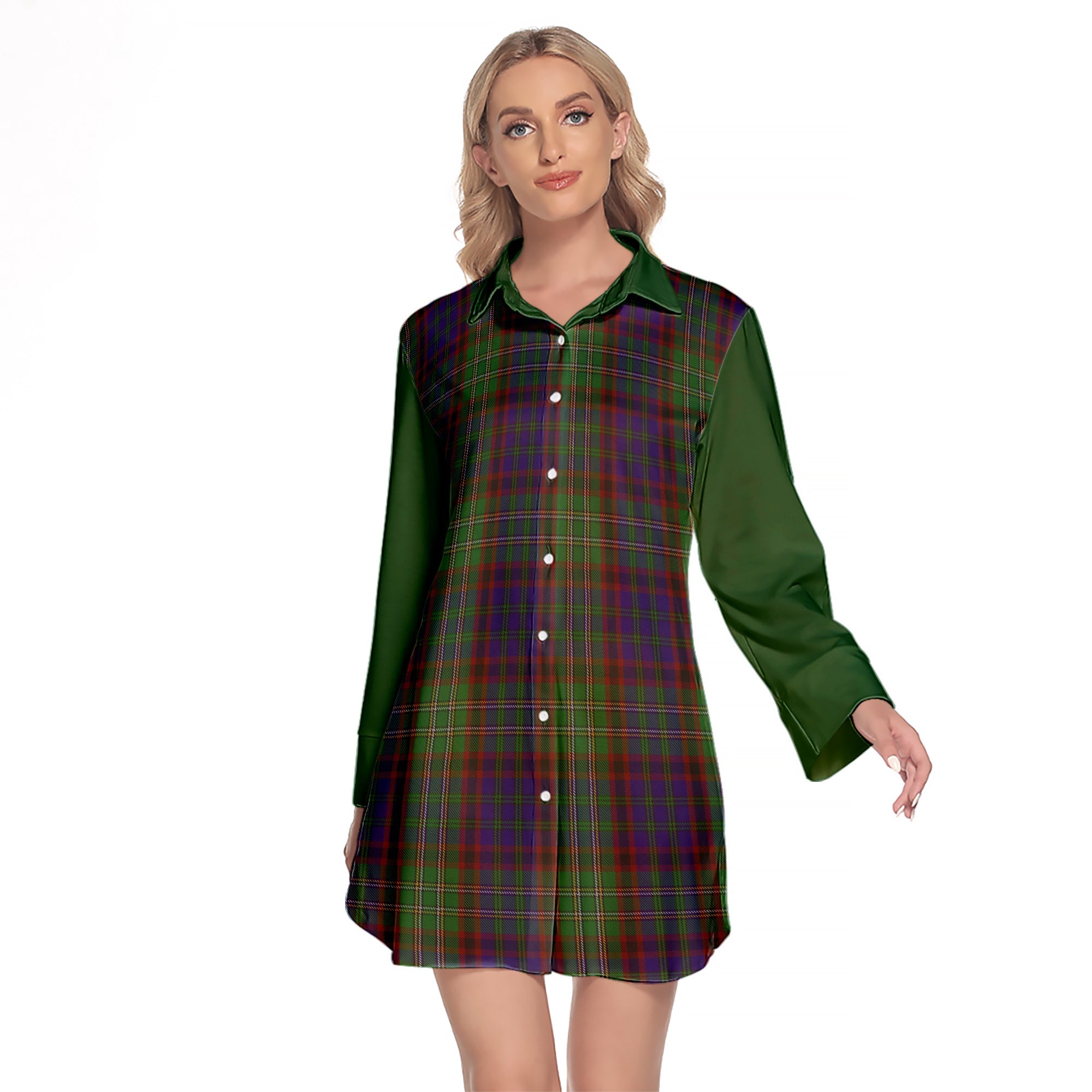 Cunningham Hunting Tartan Women's Lapel Shirt Dress With Long Sleeve
