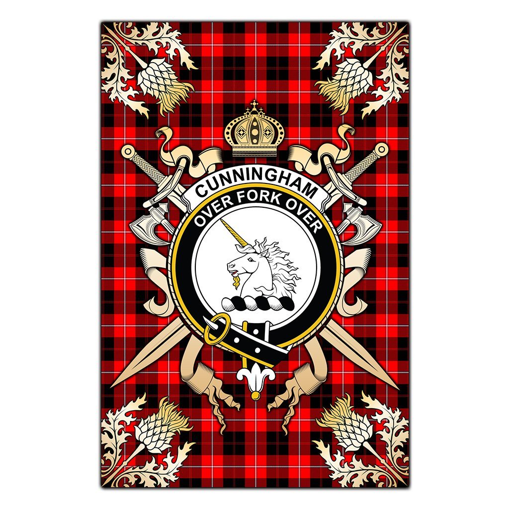 Cunningham Modern Tartan Crest Black Garden Flag - Gold Thistle Style