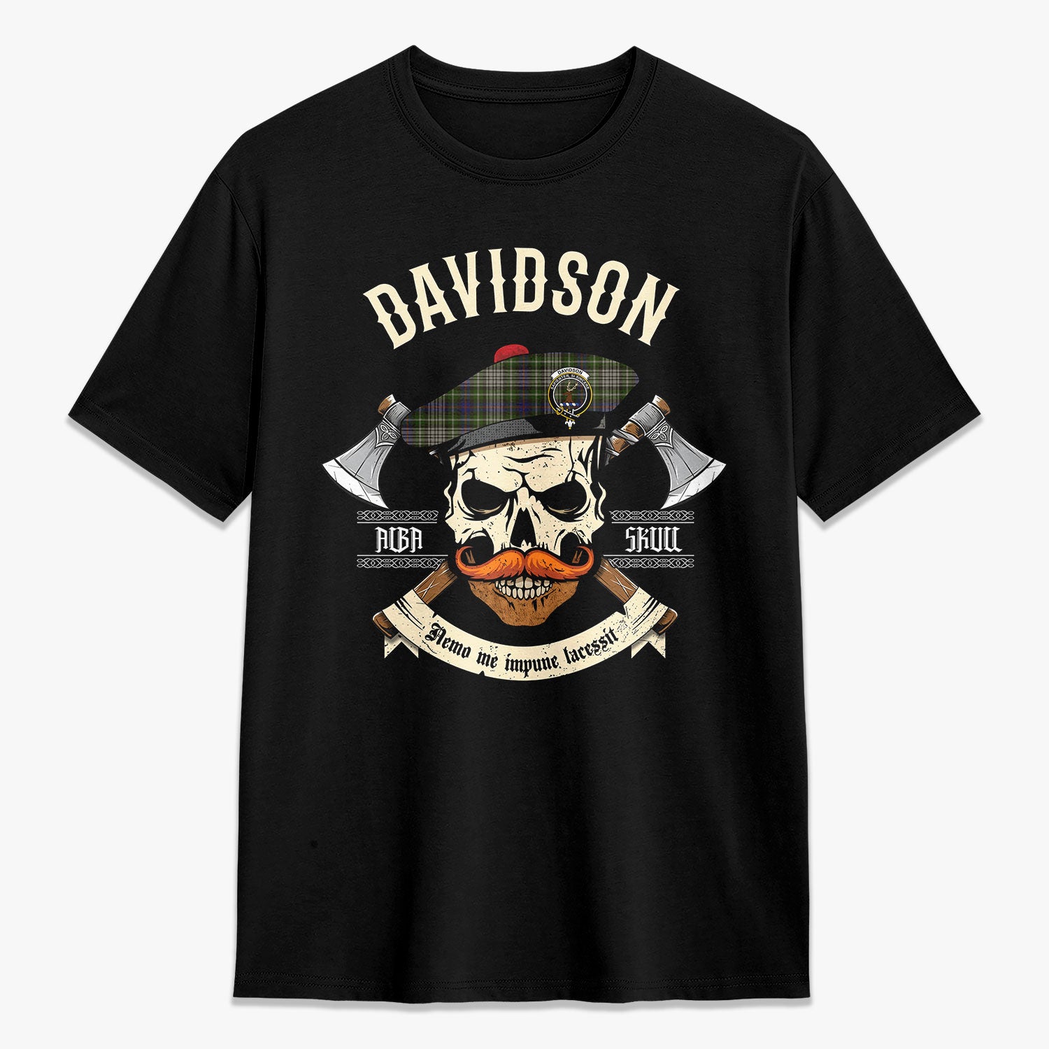 Davidson Tulloch Dress Tartan Crest 2D T-shirt - Alba Skull Style,