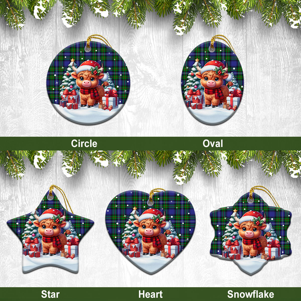 Donnachaidh Tartan Christmas Ceramic Ornament - Highland Cow Winter Style