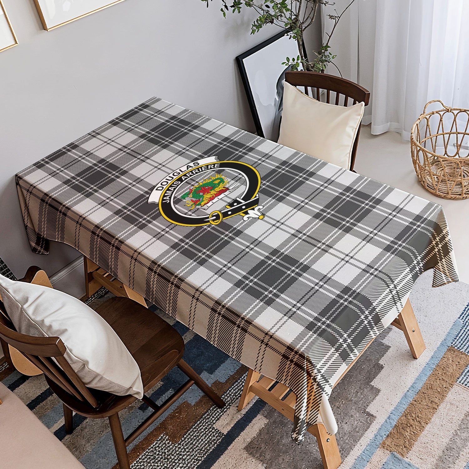 Douglas Grey Modern Tartan Crest Tablecloth