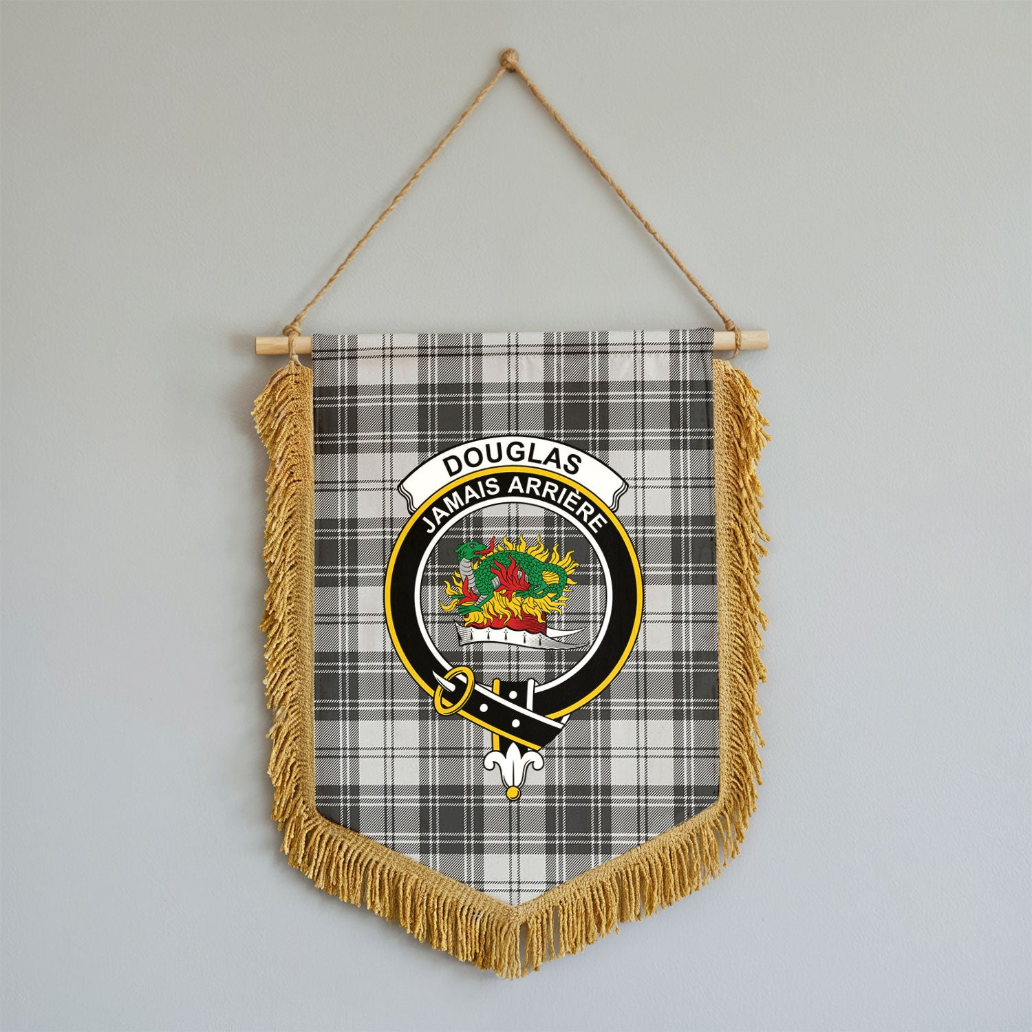 Douglas Grey Modern Tartan Crest Wall Hanging Banner - Wood Pole