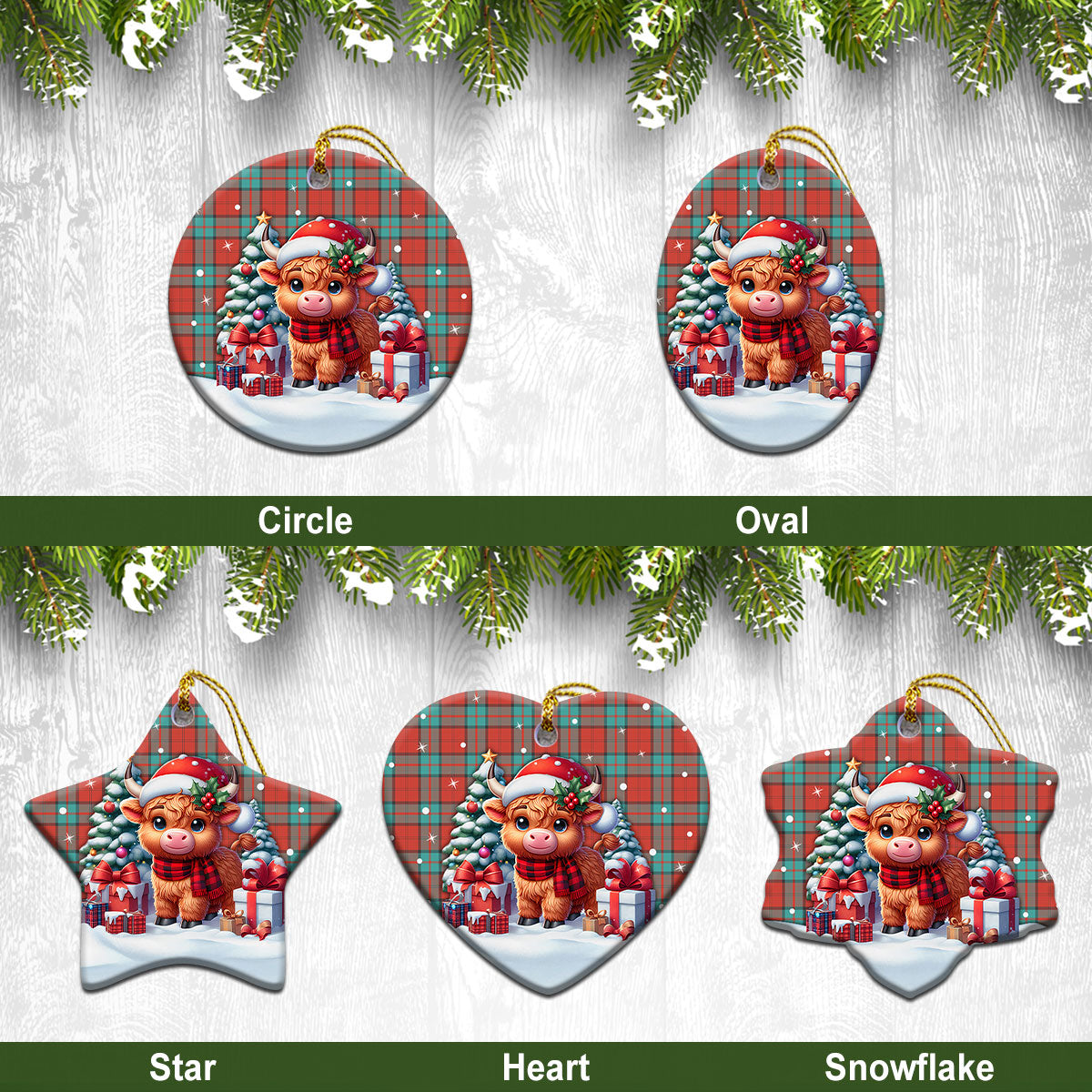 Dunbar Ancient Tartan Christmas Ceramic Ornament - Highland Cow Winter Style