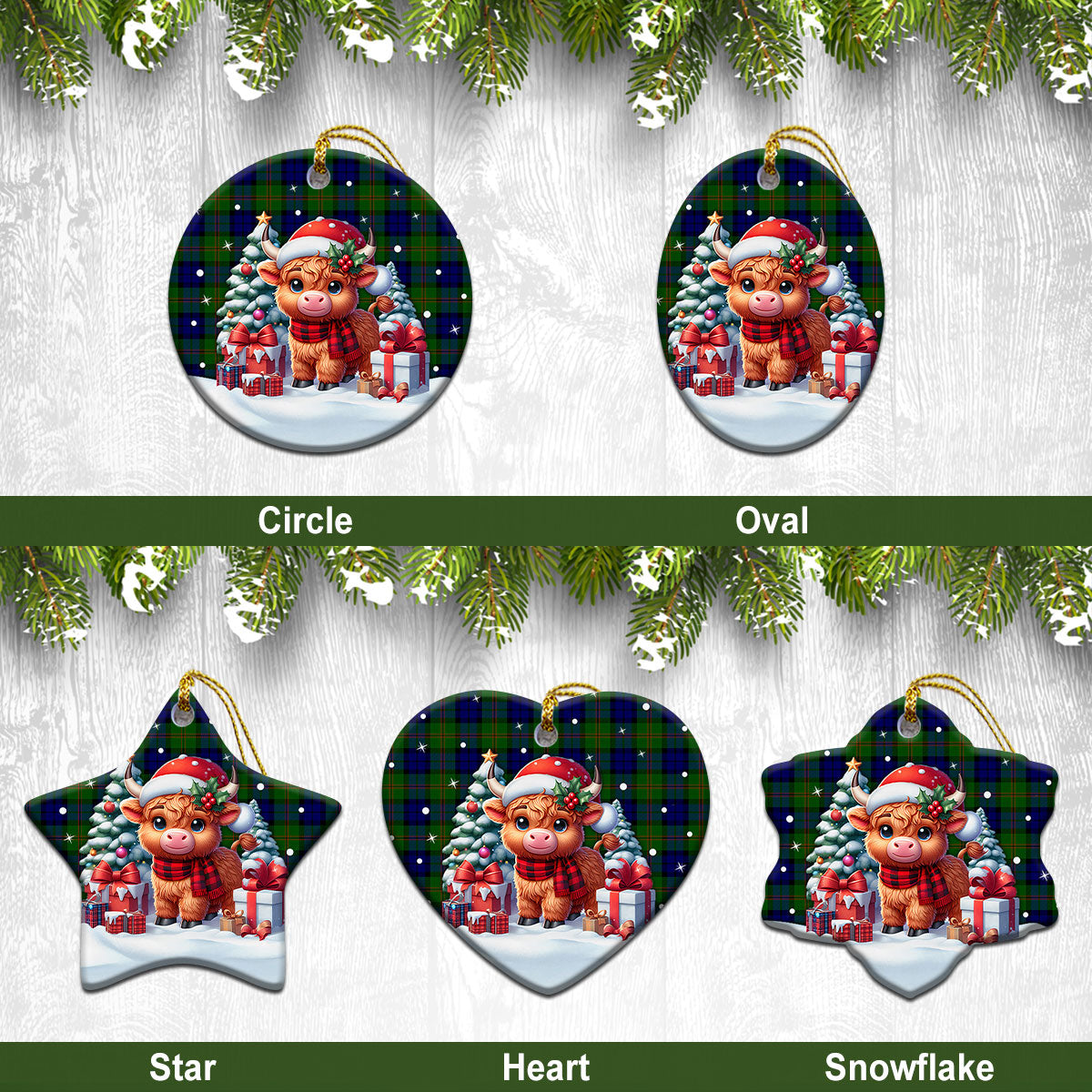 Dundas Modern Tartan Christmas Ceramic Ornament - Highland Cow Winter Style
