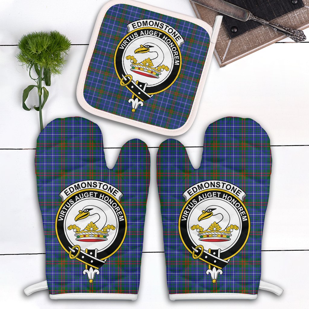 Edmonstone Tartan Crest Oven Mitt And Pot Holder (2 Oven Mitts + 1 Pot Holder)