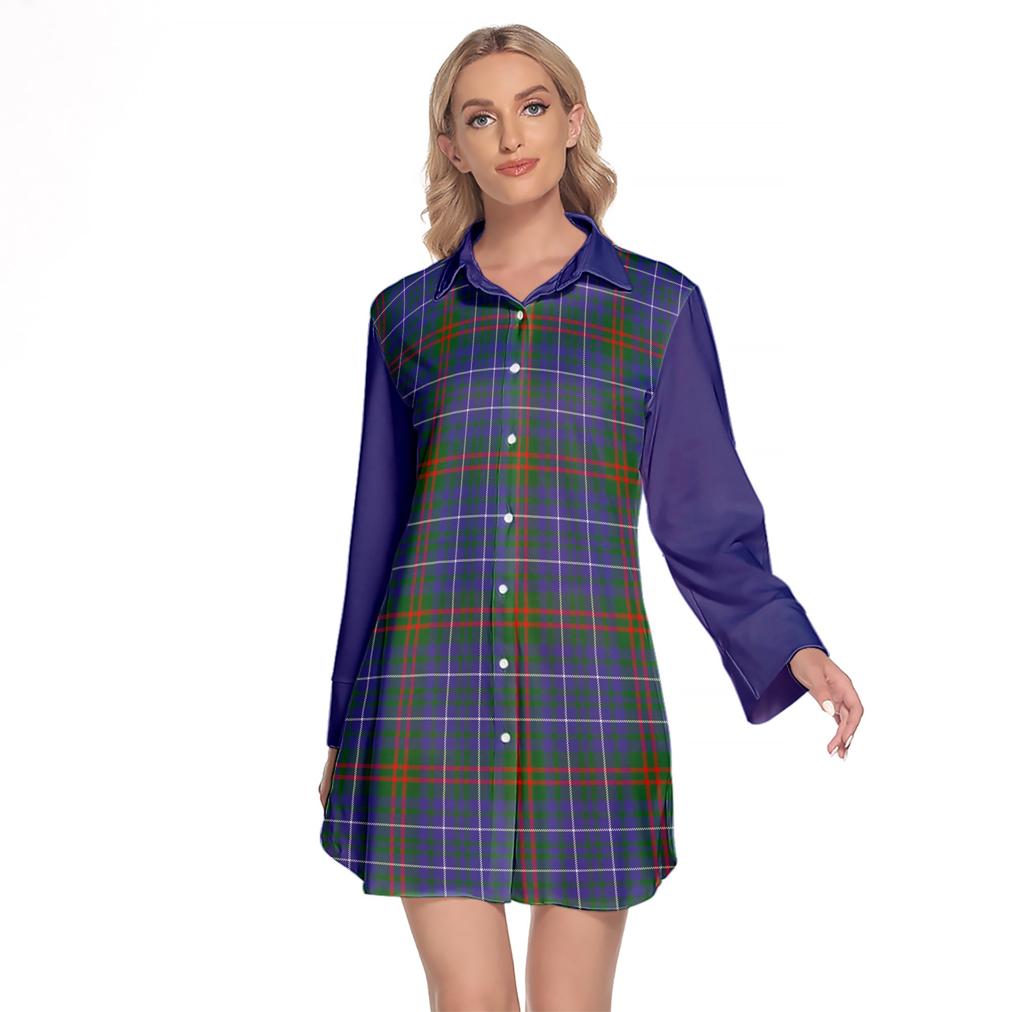 Edmonstone Tartan Women's Lapel Shirt Dress With Long Sleeve