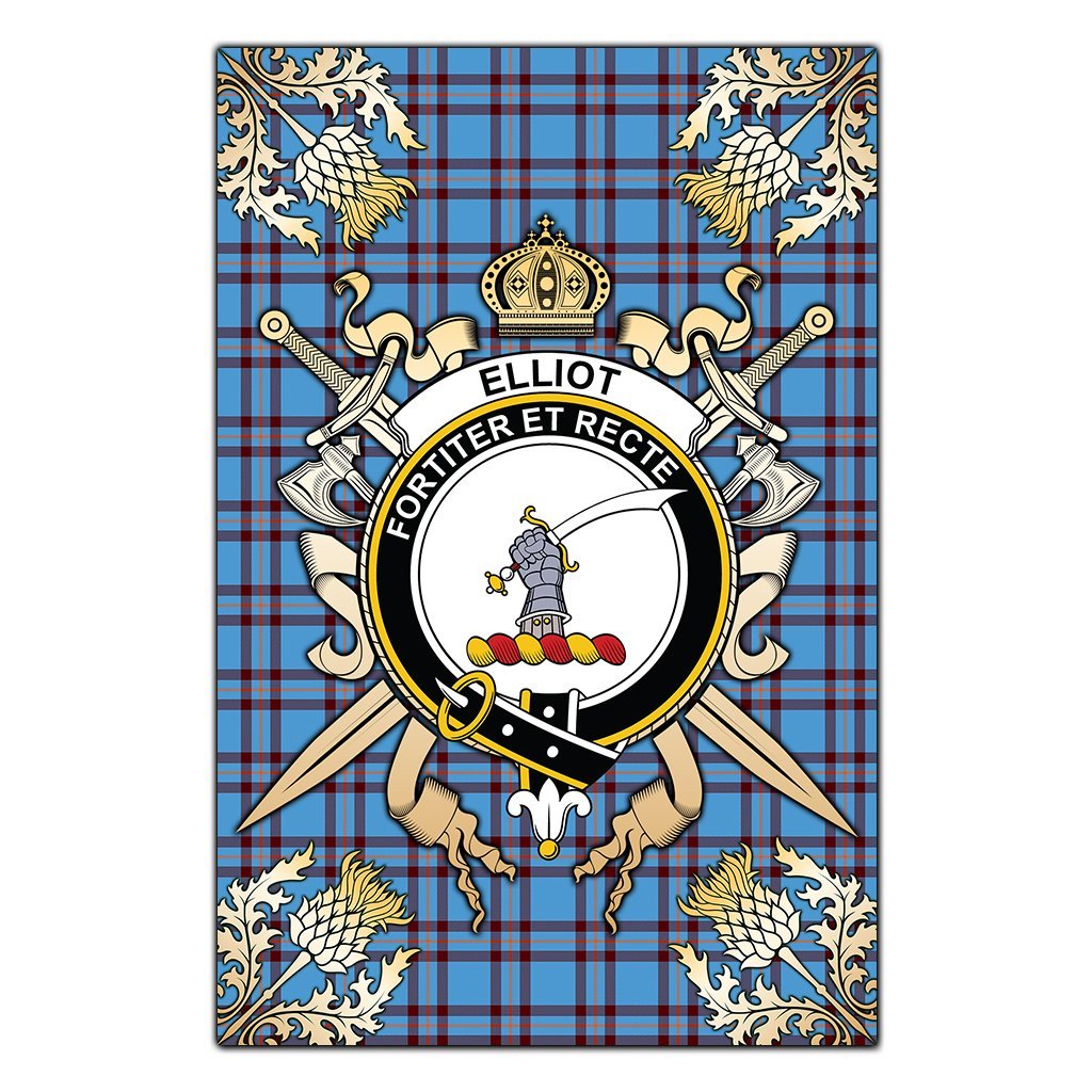 Elliot Ancient Tartan Crest Black Garden Flag - Gold Thistle Style