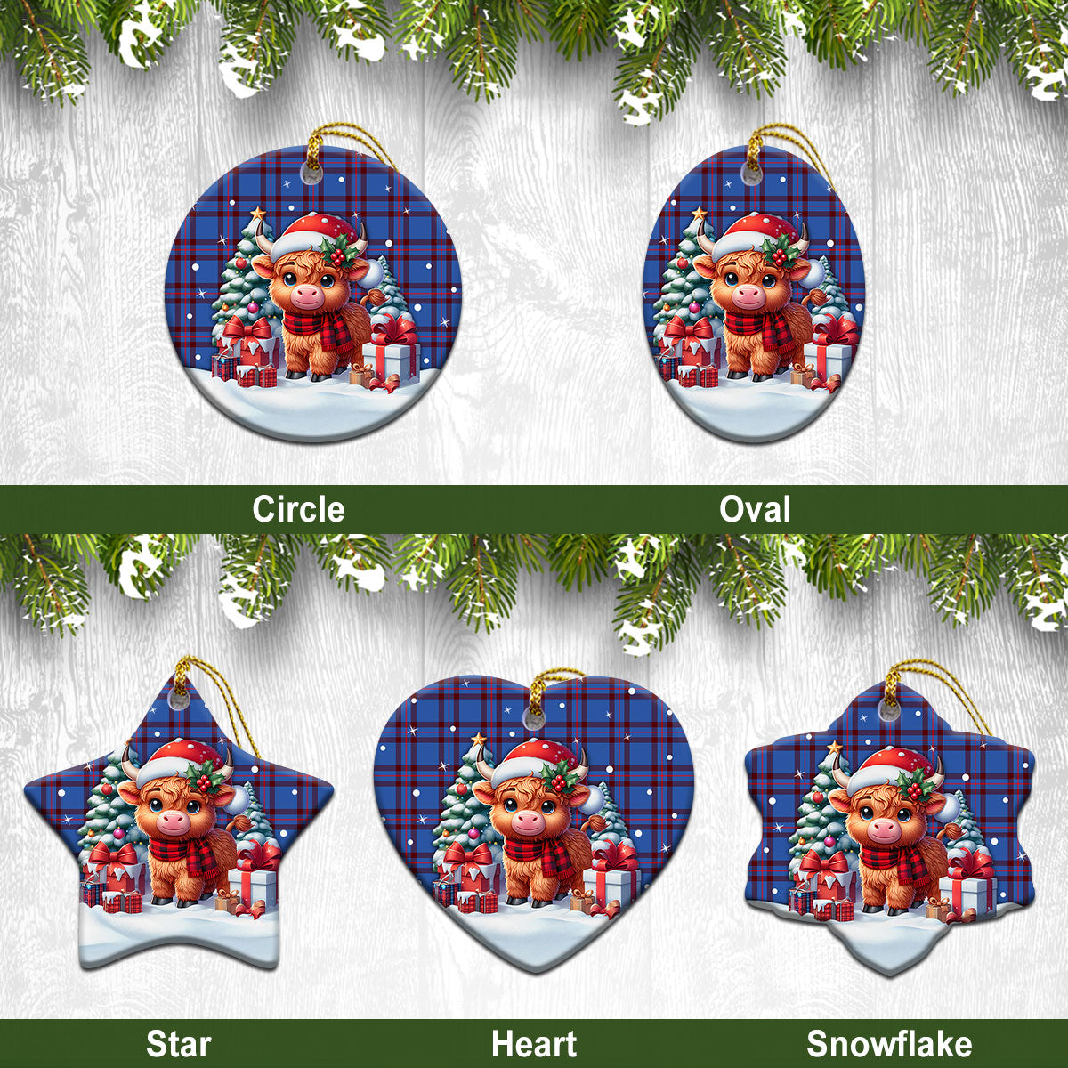 Elliot Modern Tartan Christmas Ceramic Ornament - Highland Cow Winter Style