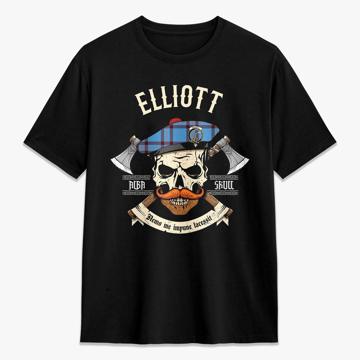 Elliott Ancient Tartan Crest 2D T-shirt - Alba Skull Style,