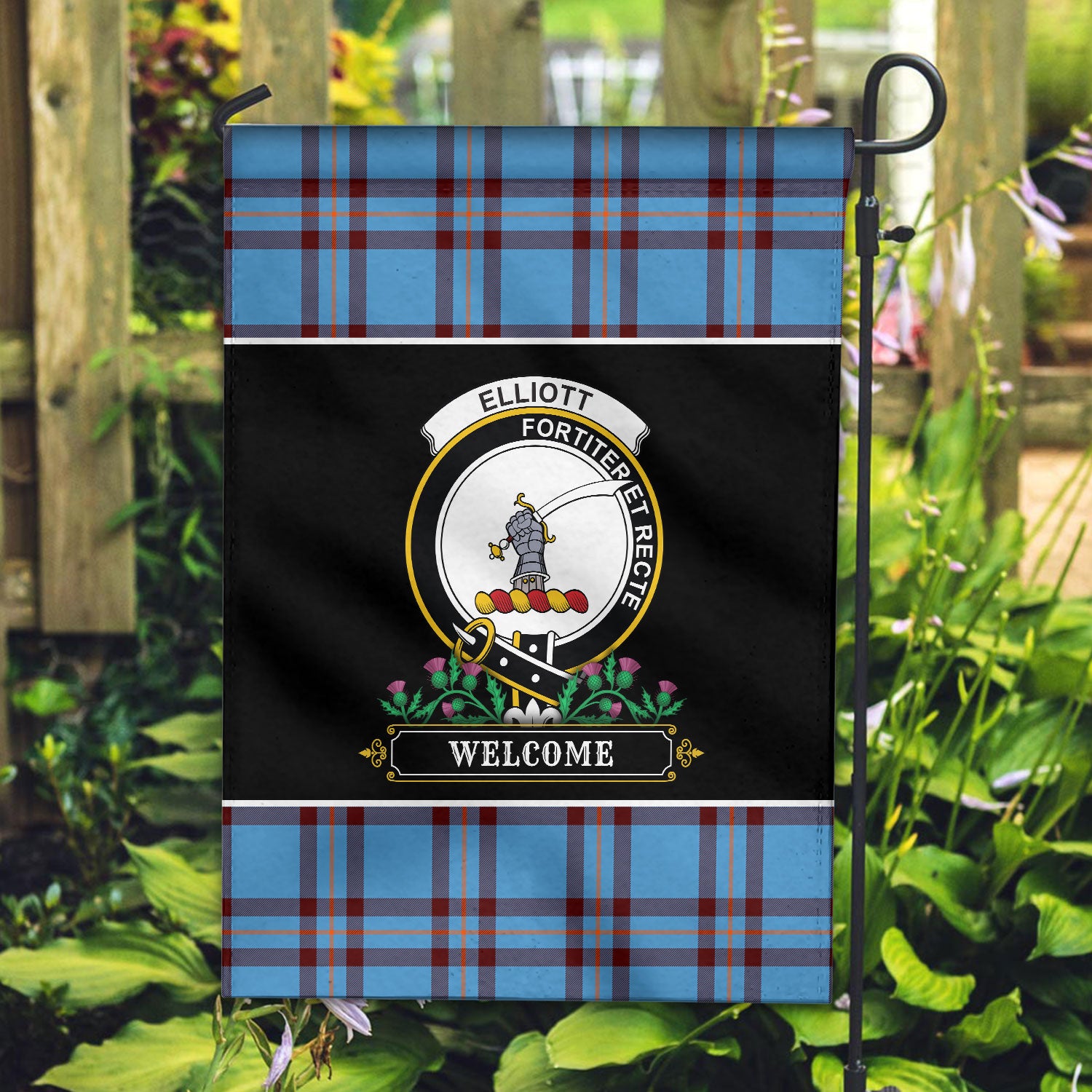 Elliott Ancient Tartan Crest Garden Flag - Welcome Style