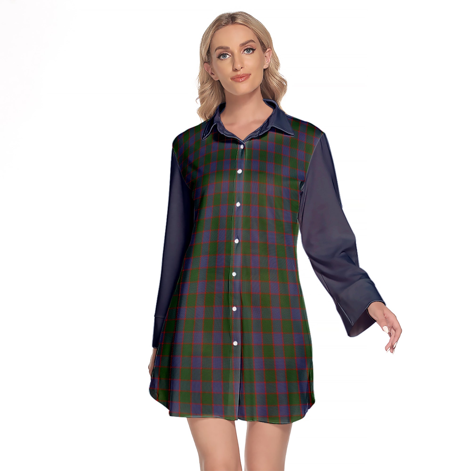 Ferguson Old Tartan Women's Lapel Shirt Dress With Long Sleeve