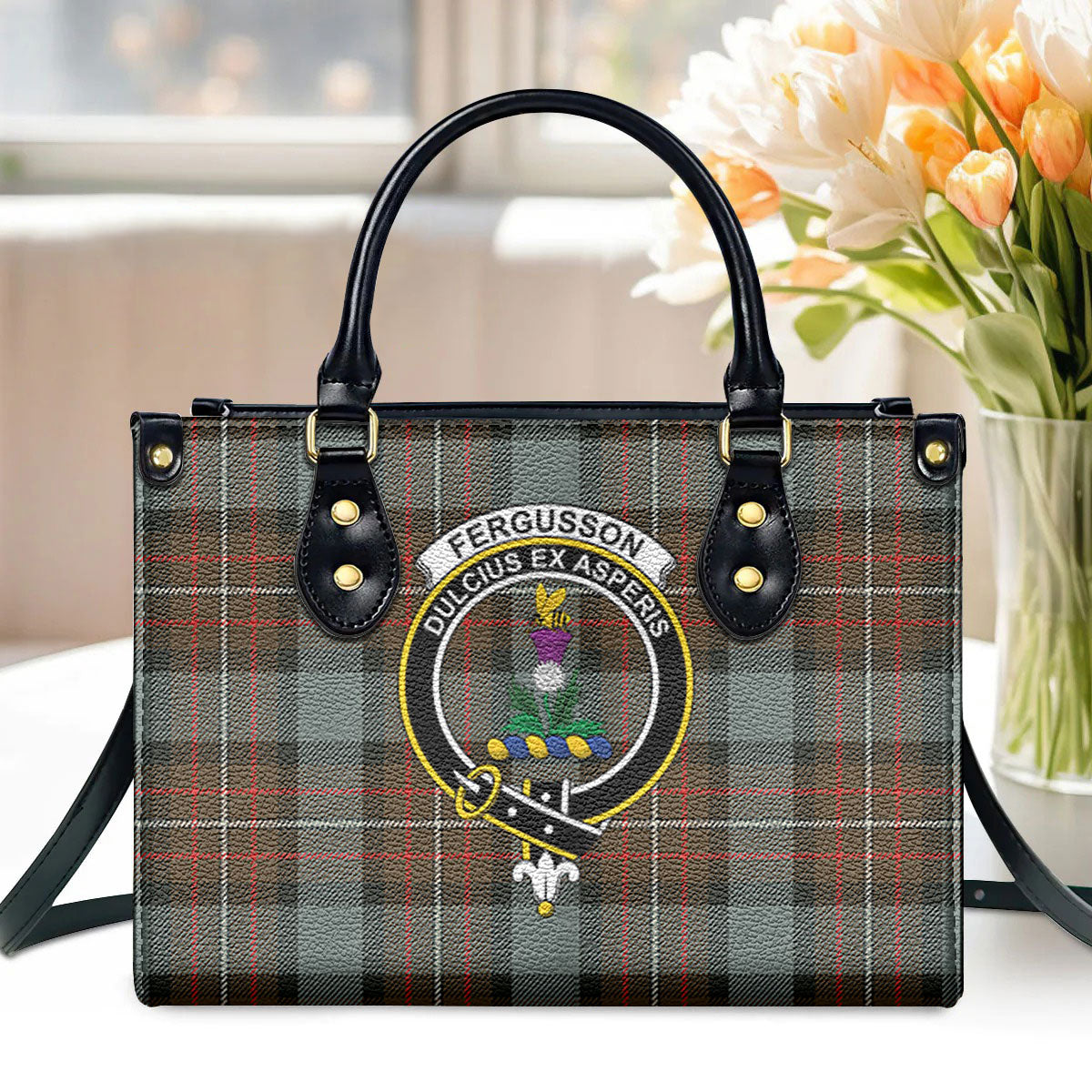 Fergusson Weathered Tartan Crest Leather Handbag