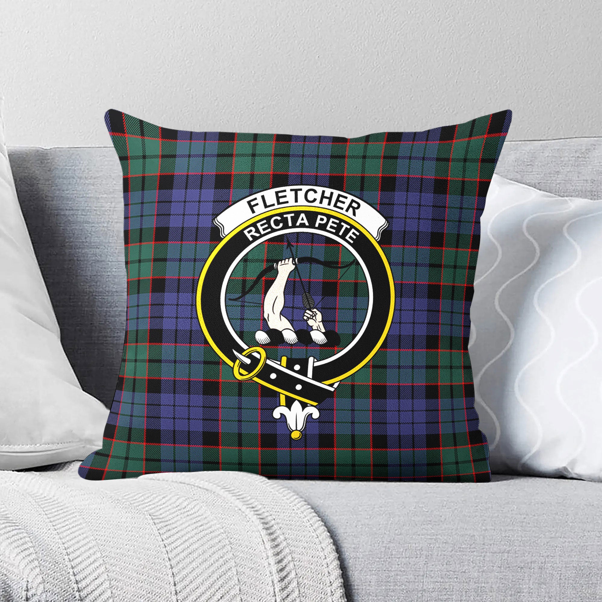 Fletcher Modern Tartan Crest Pillow Cover