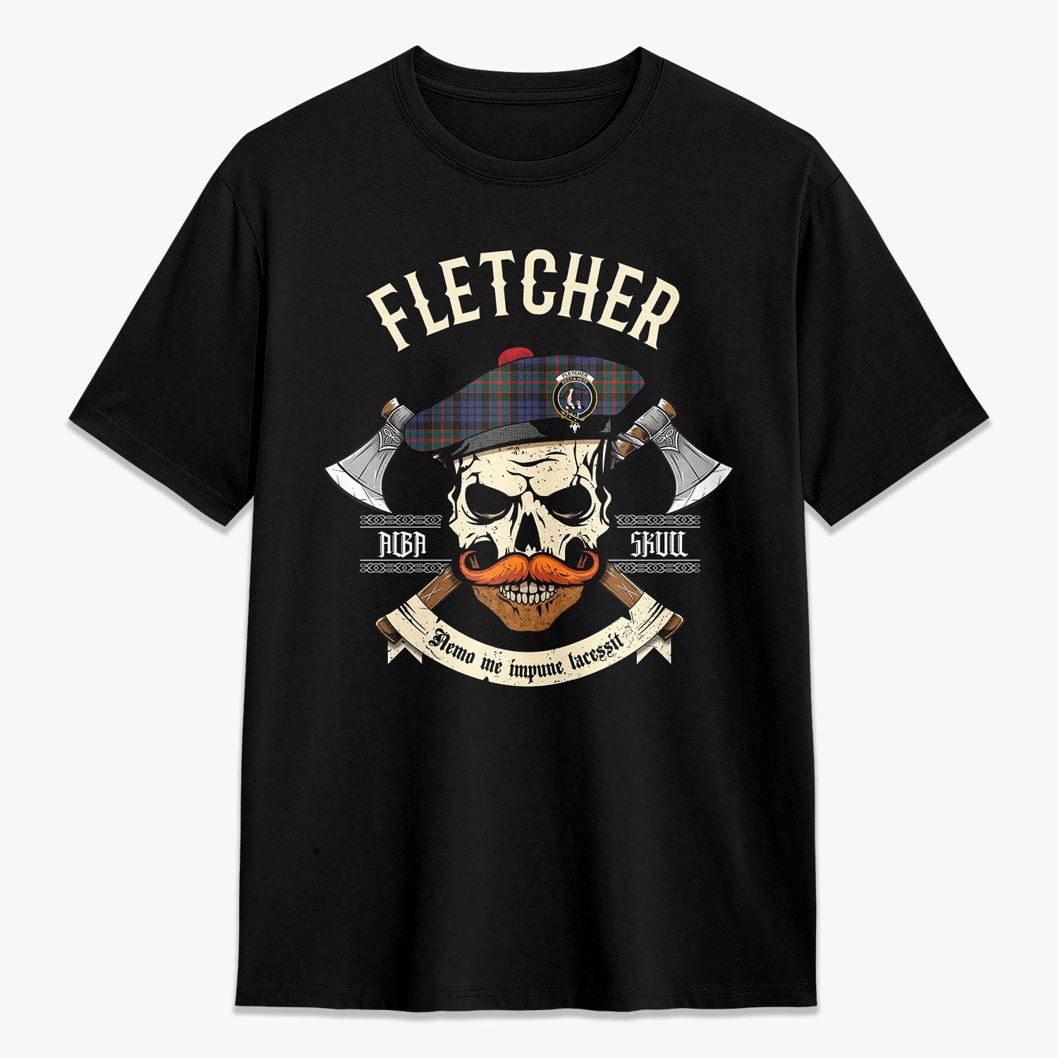 Fletcher of Dunans Tartan Crest 2D T-shirt - Alba Skull Style