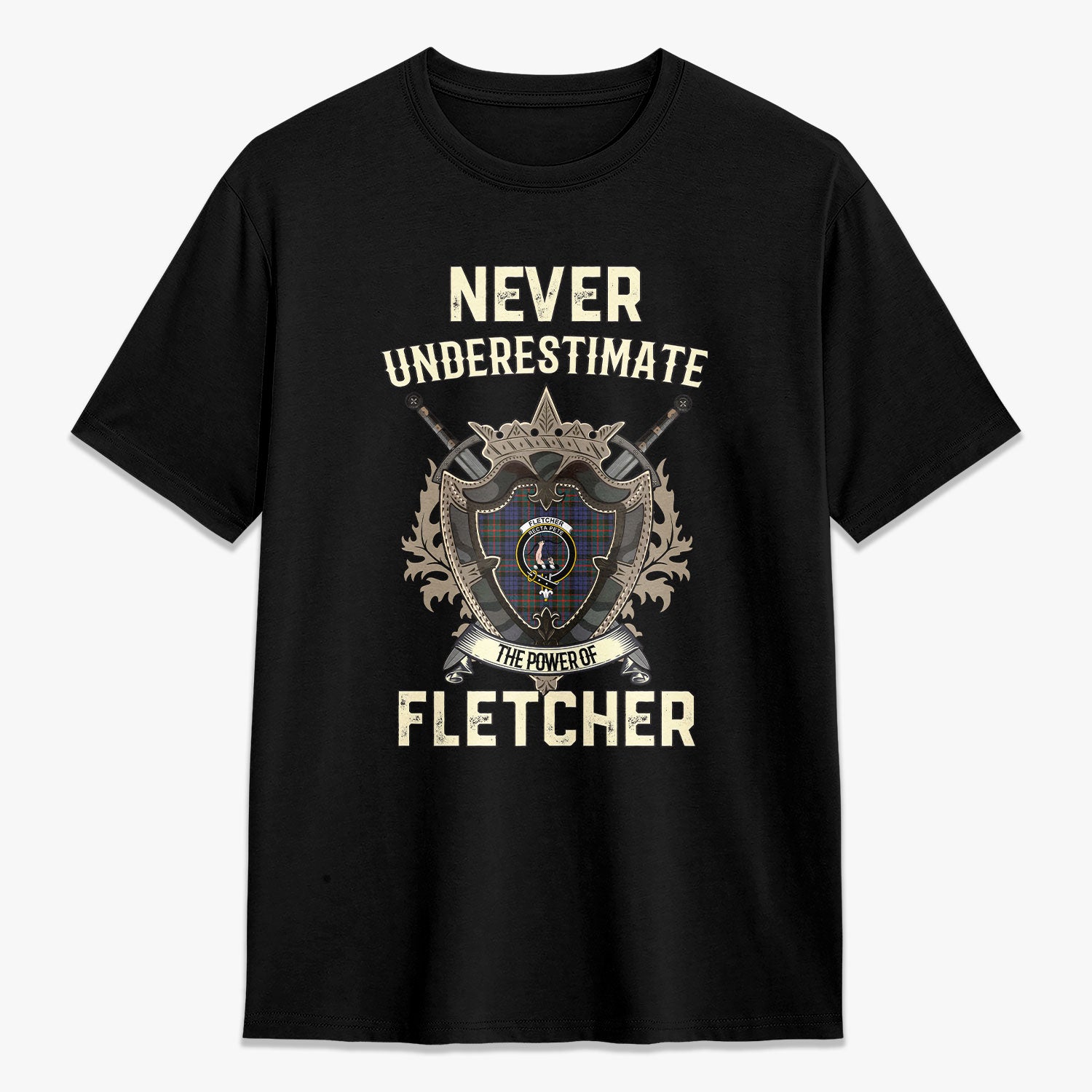 Fletcher of Dunans Tartan Crest 2D T-shirt - Never Underestimate Style