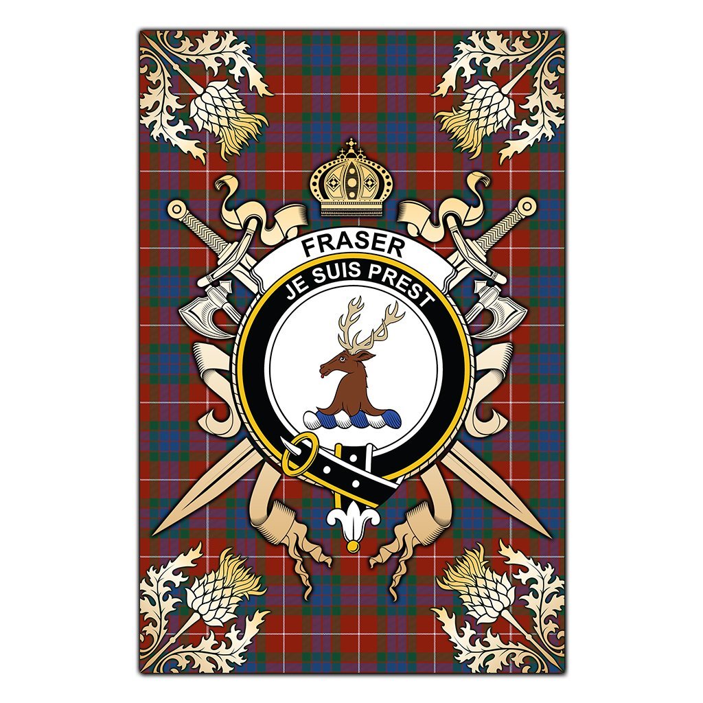 Fraser Ancient Tartan Crest Black Garden Flag - Gold Thistle Style