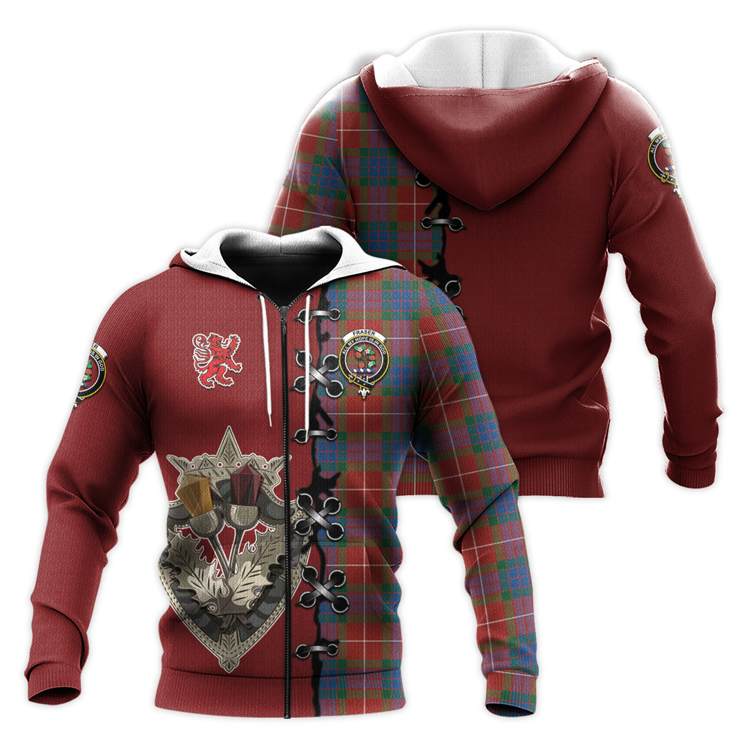 Fraser Ancient Tartan Hoodie - Lion Rampant And Celtic Thistle Style