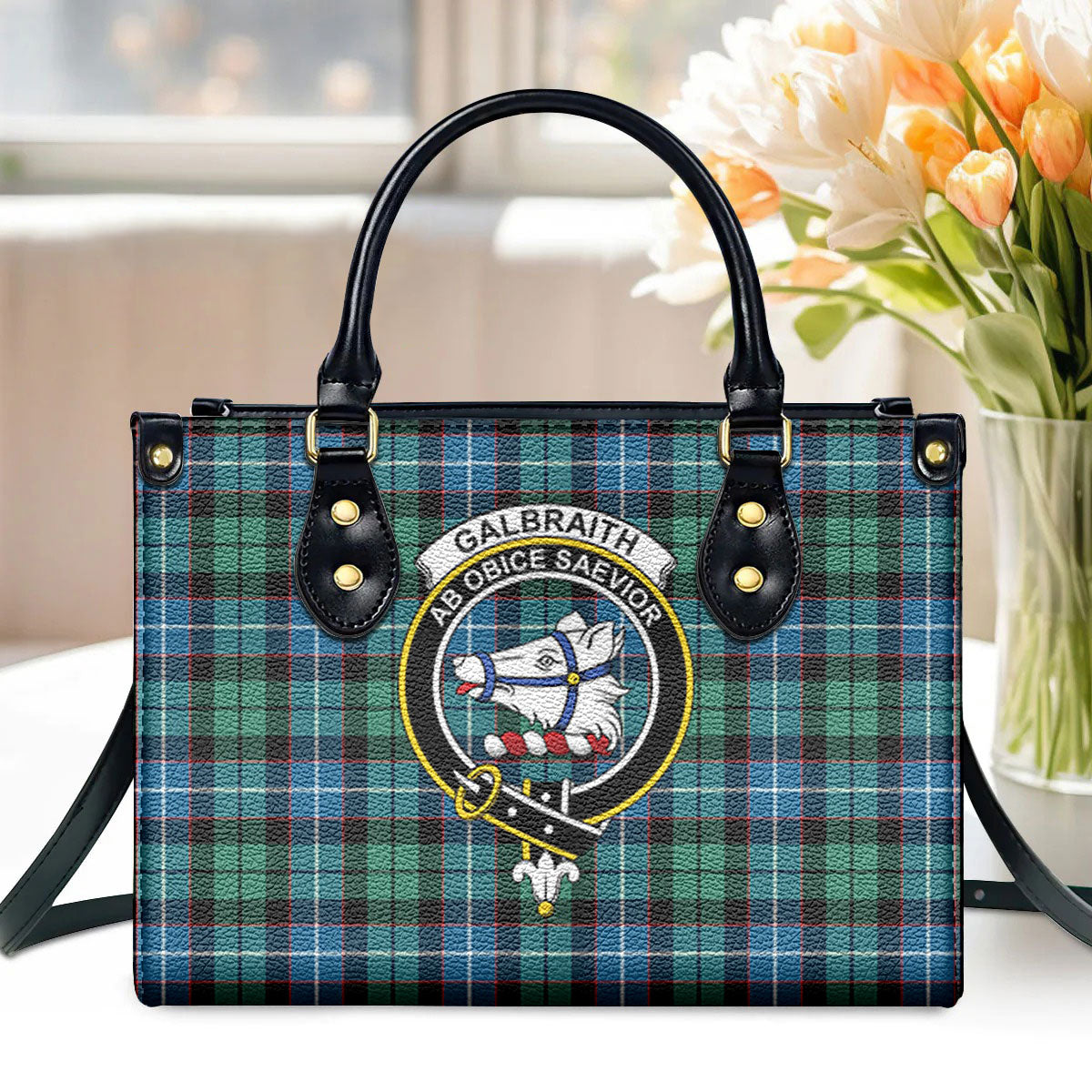 Galbraith Ancient Tartan Crest Leather Handbag