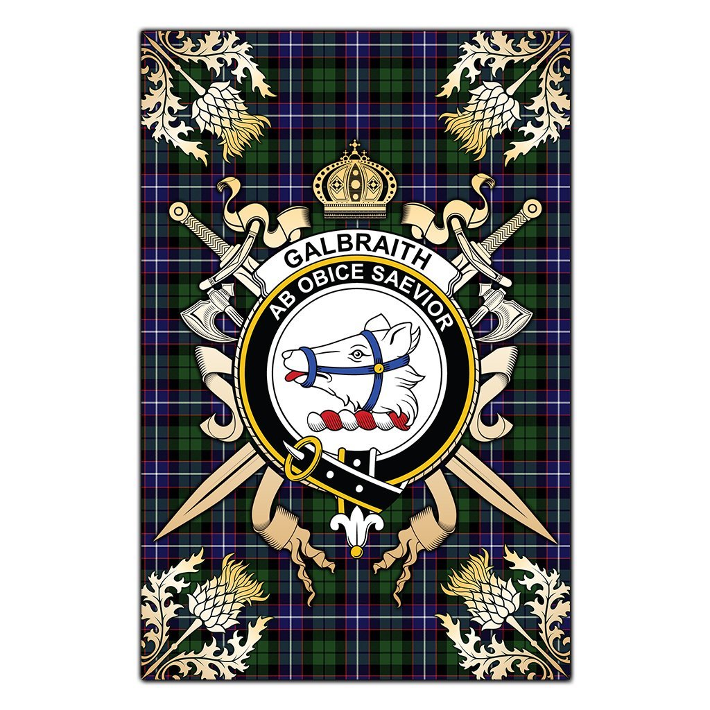 Galbraith Modern Tartan Crest Black Garden Flag - Gold Thistle Style