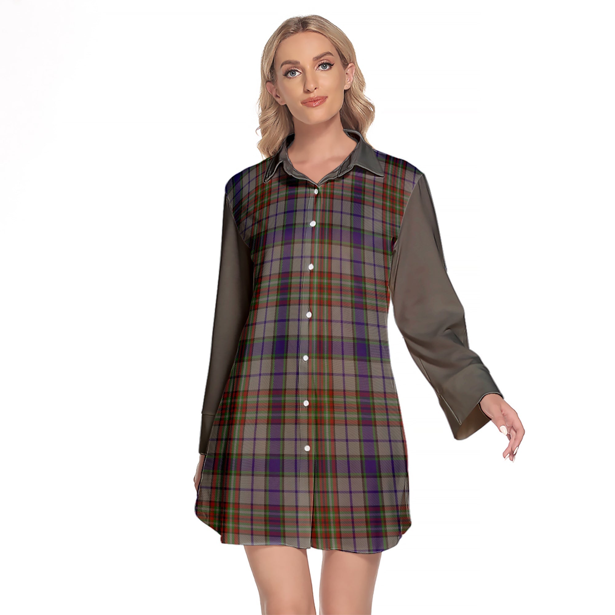Gayre Hunting Tartan Women's Lapel Shirt Dress With Long Sleeve