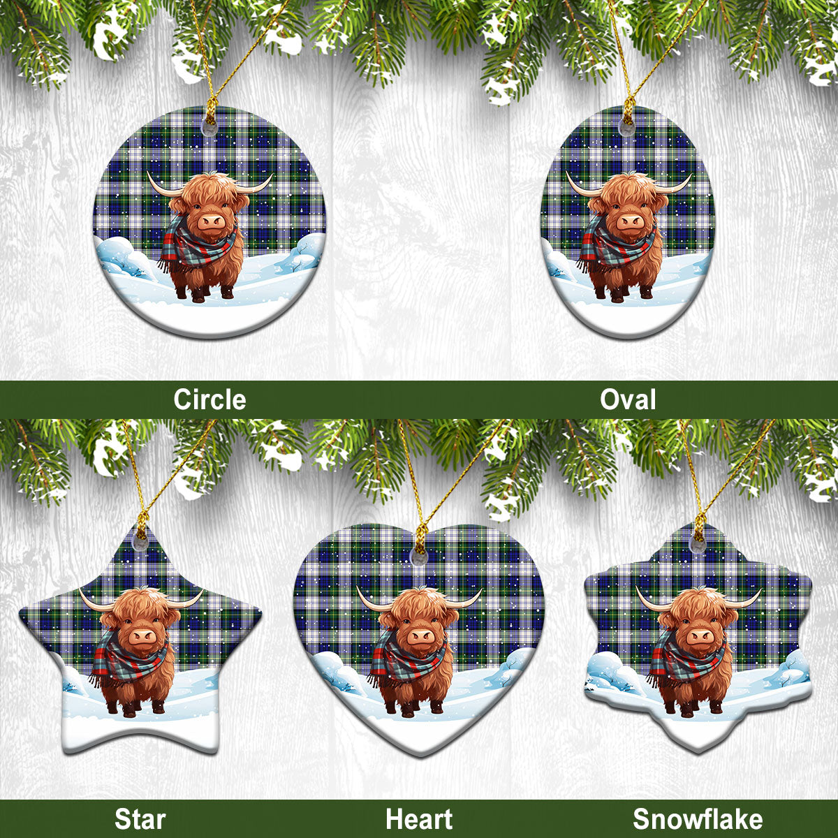 Gordon Dress Modern Tartan Christmas Ceramic Ornament - Highland Cows Snow Style