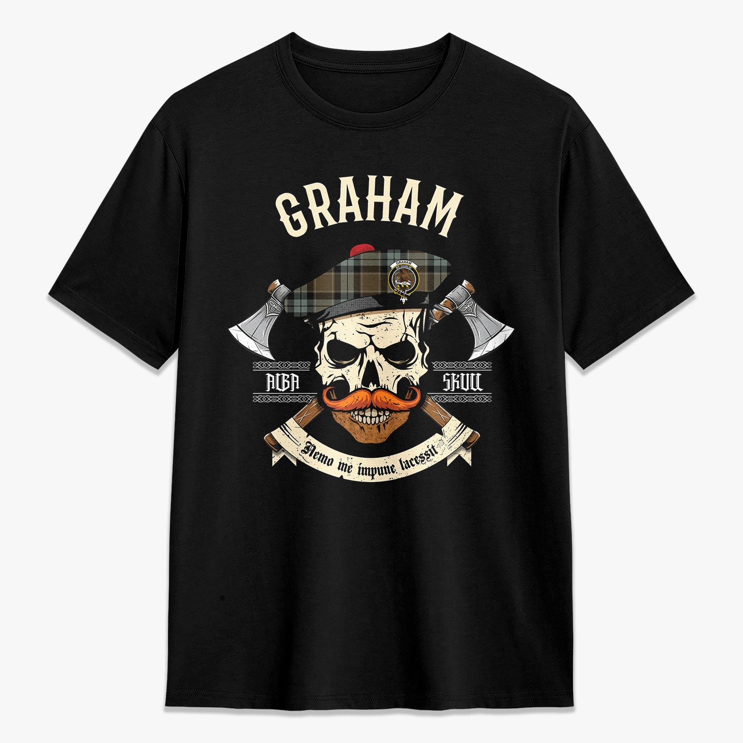 Graham of Menteith Weathered Tartan Crest 2D T-shirt - Alba Skull Style,