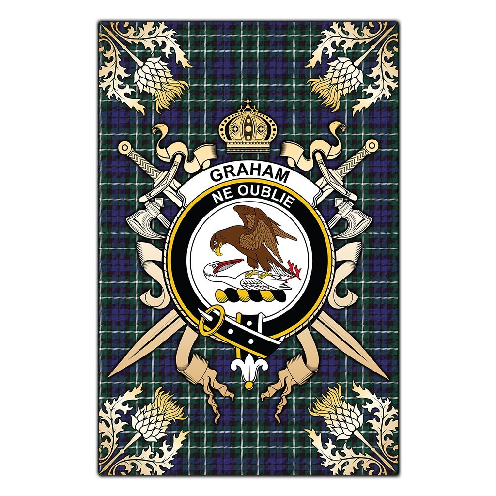 Graham of Montrose Modern Tartan Crest Black Garden Flag - Gold Thistle Style