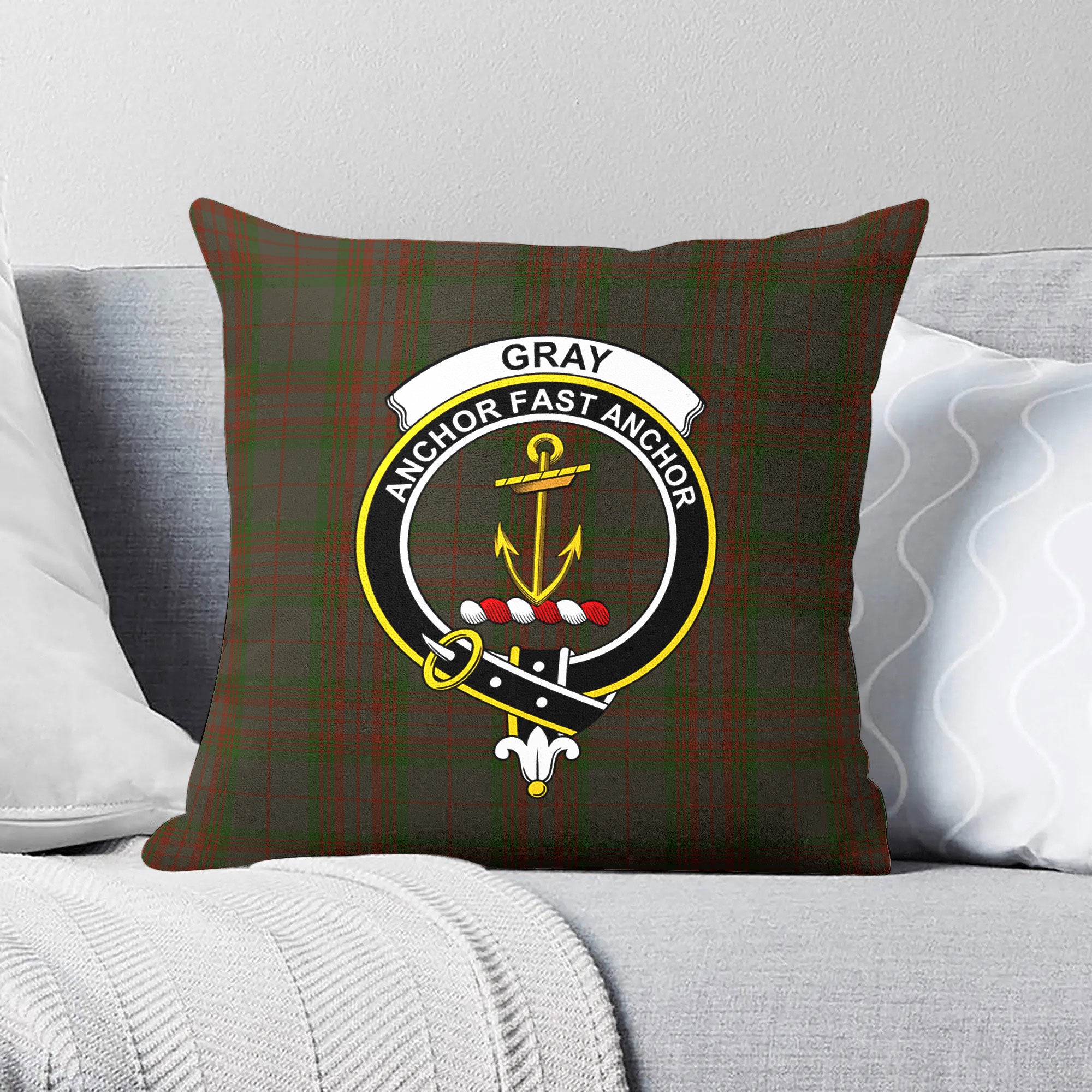 Gray Tartan Crest Pillow Cover