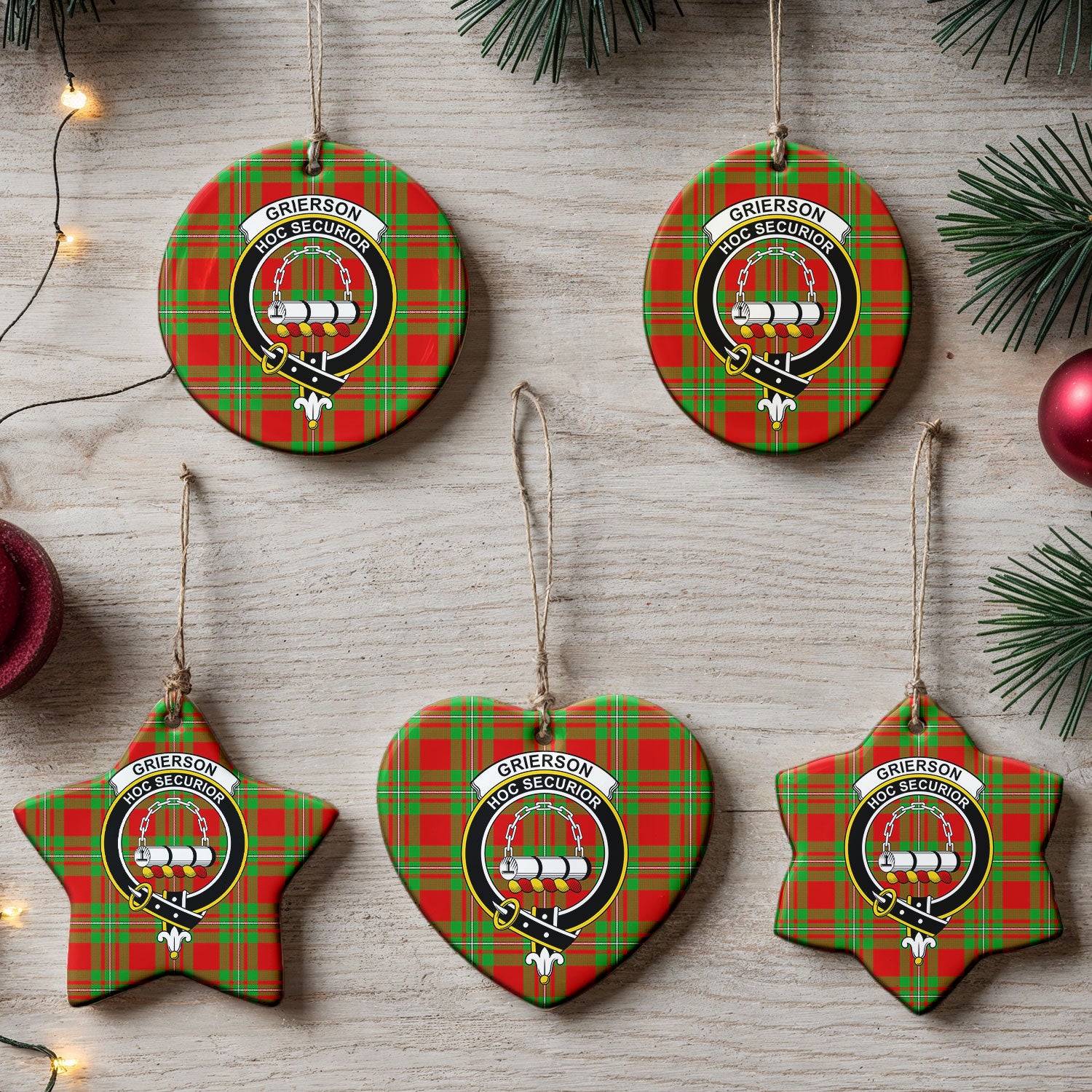 Grierson Tartan Crest Christmas Ceramic Ornament