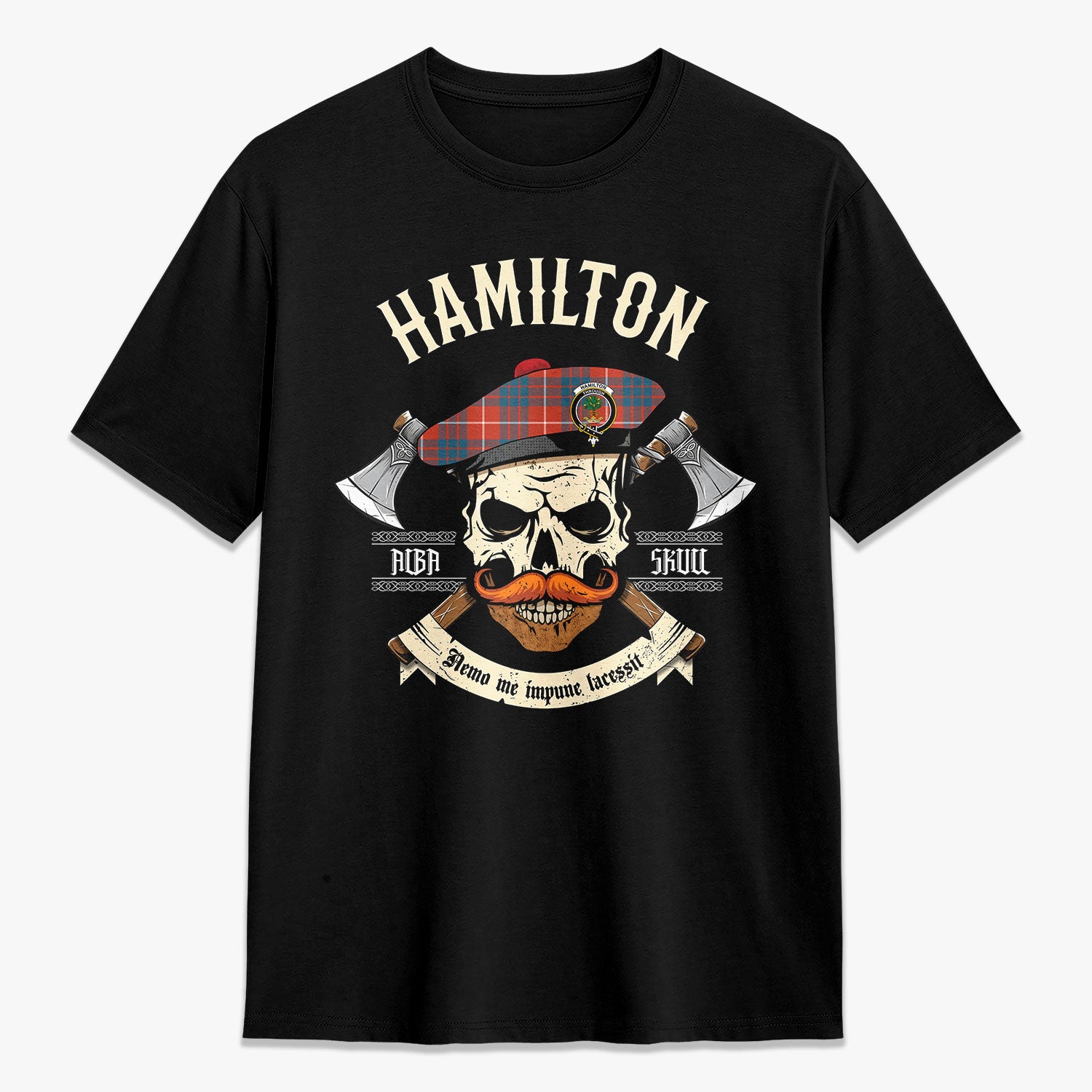 Hamilton Ancient Tartan Crest 2D T-shirt - Alba Skull Style