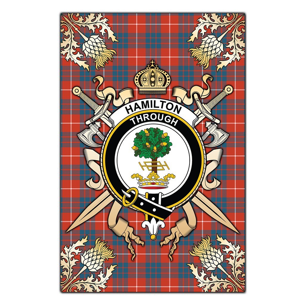 Hamilton Ancient Tartan Crest Black Garden Flag - Gold Thistle Style