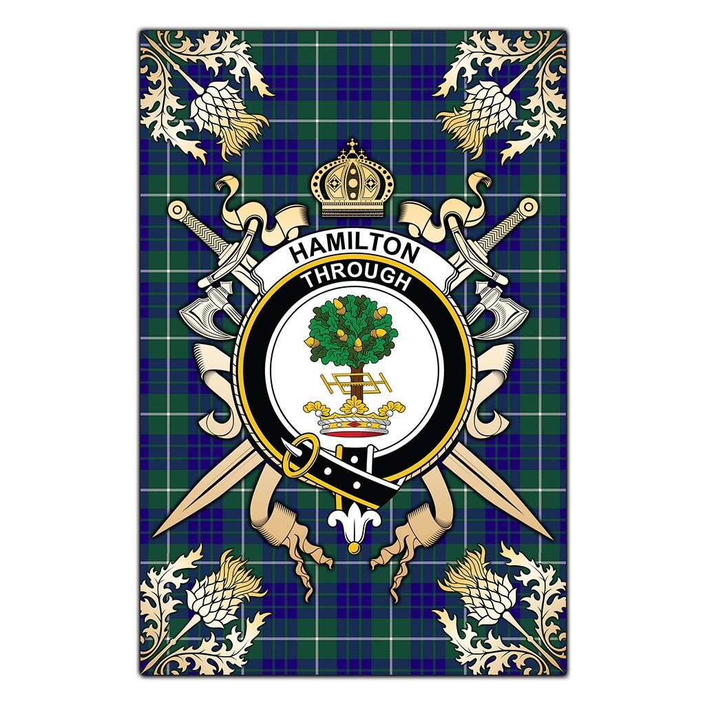 Hamilton Hunting Modern Tartan Crest Black Garden Flag - Gold Thistle Style
