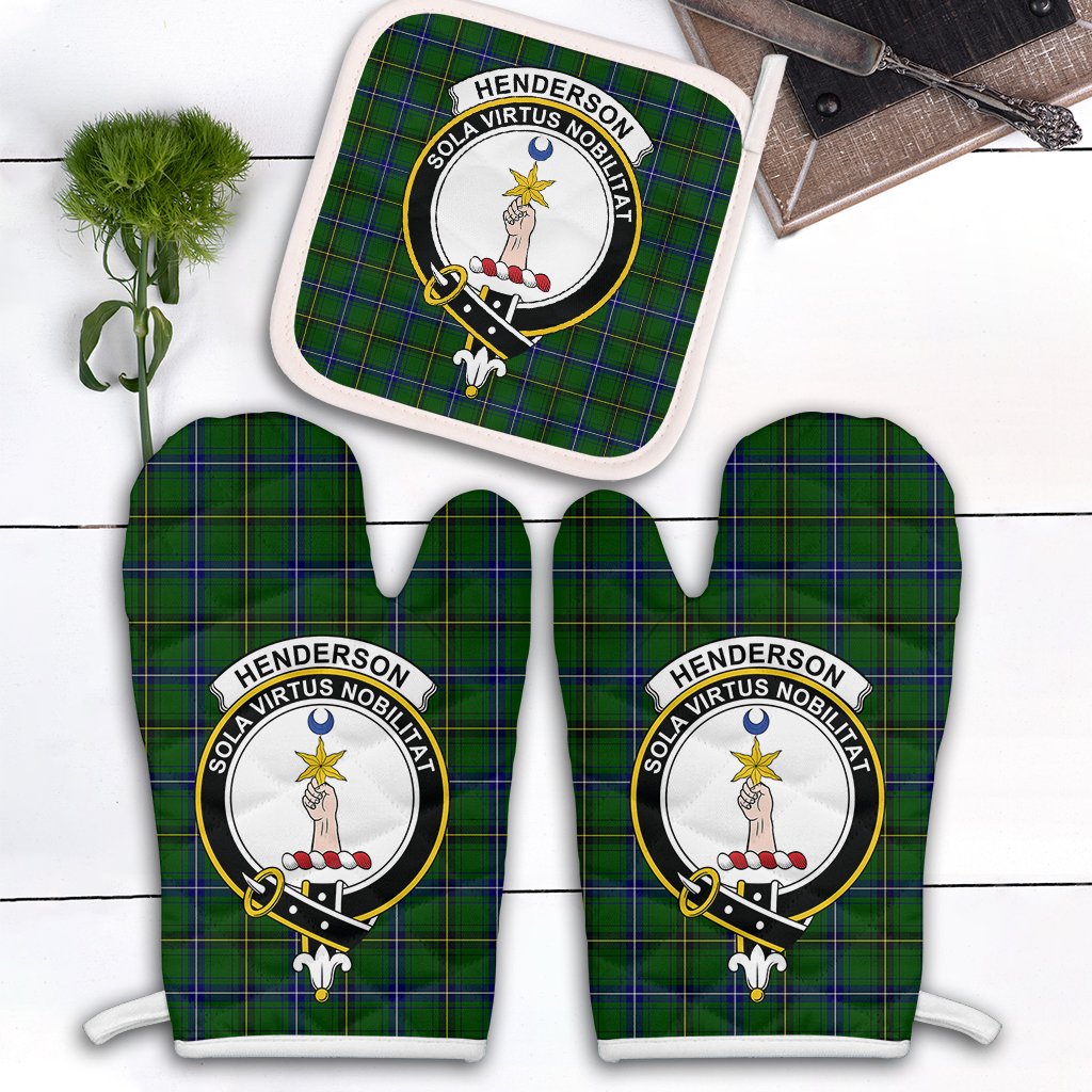 Henderson Modern Tartan Crest Oven Mitt And Pot Holder (2 Oven Mitts + 1 Pot Holder)