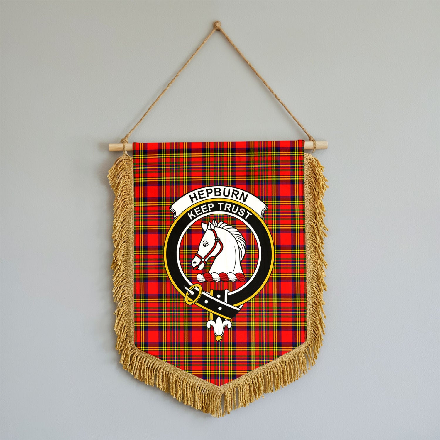Hepburn Tartan Crest Wall Hanging Banner - Wood Pole