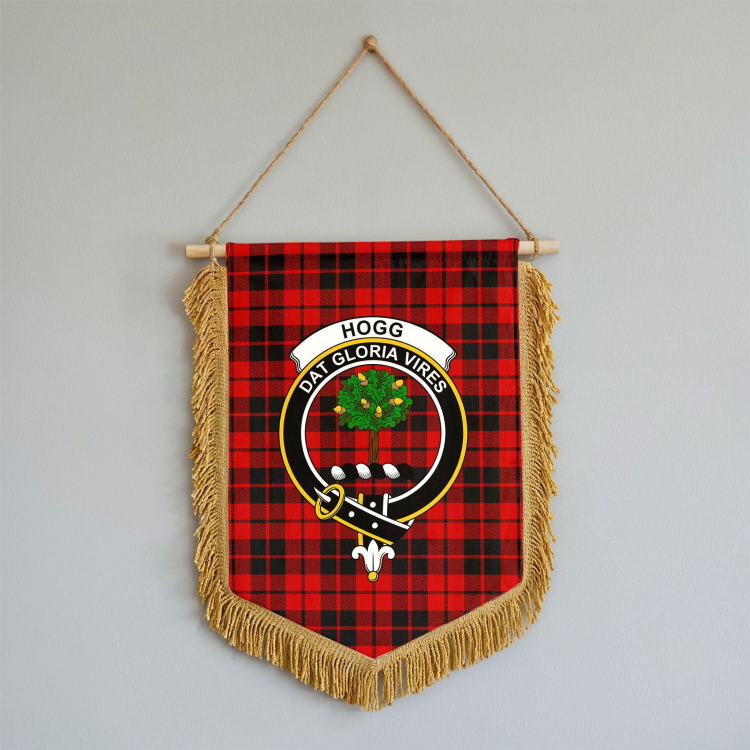 Hogg Tartan Crest Wall Hanging Banner - Wood Pole