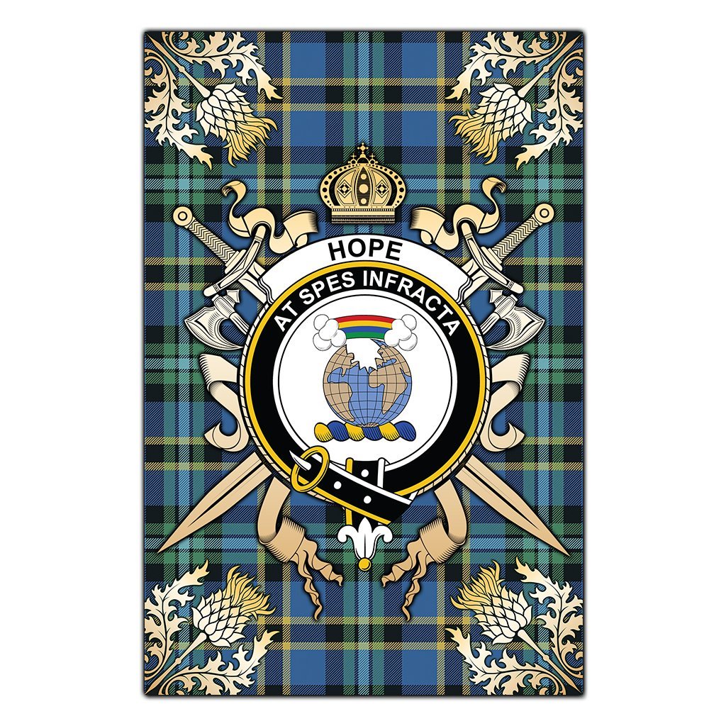 Hope Tartan Crest Black Garden Flag - Gold Thistle Style