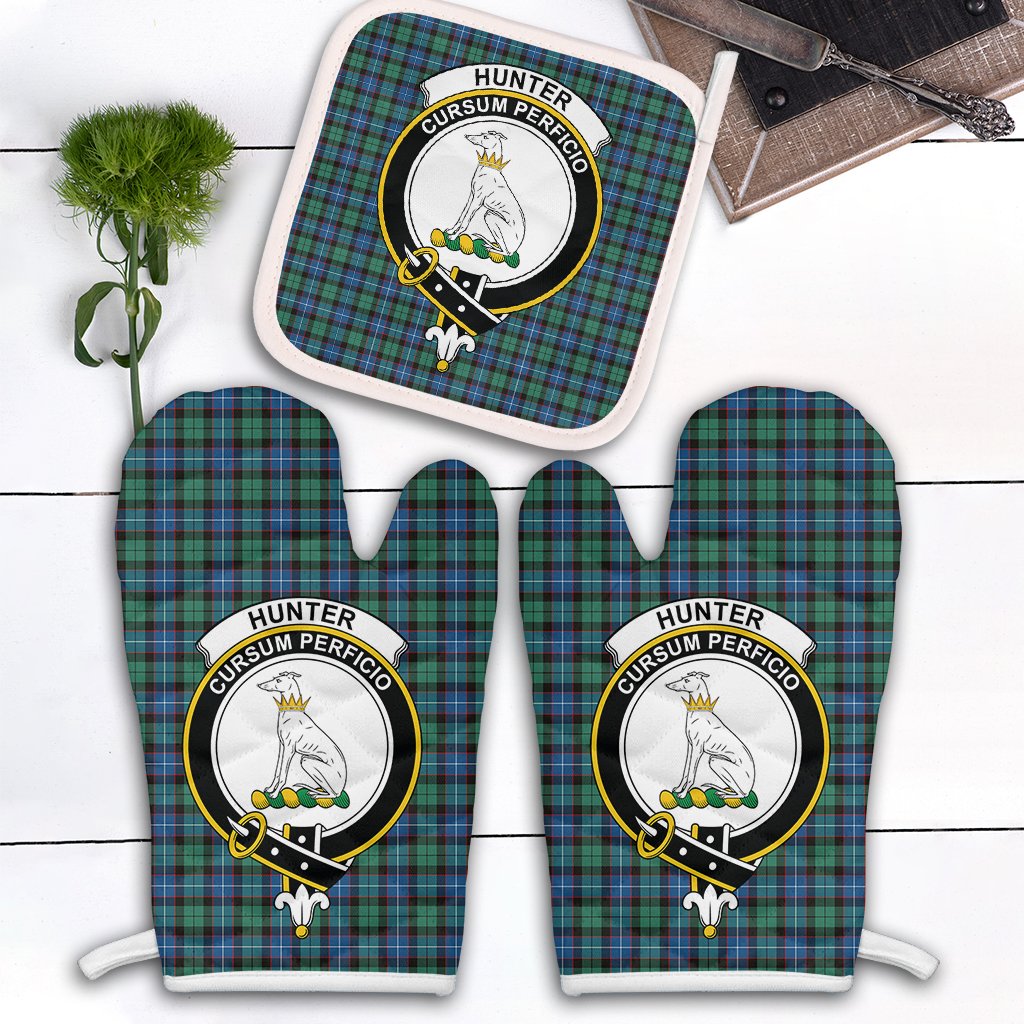 Hunter Ancient Tartan Crest Oven Mitt And Pot Holder (2 Oven Mitts + 1 Pot Holder)
