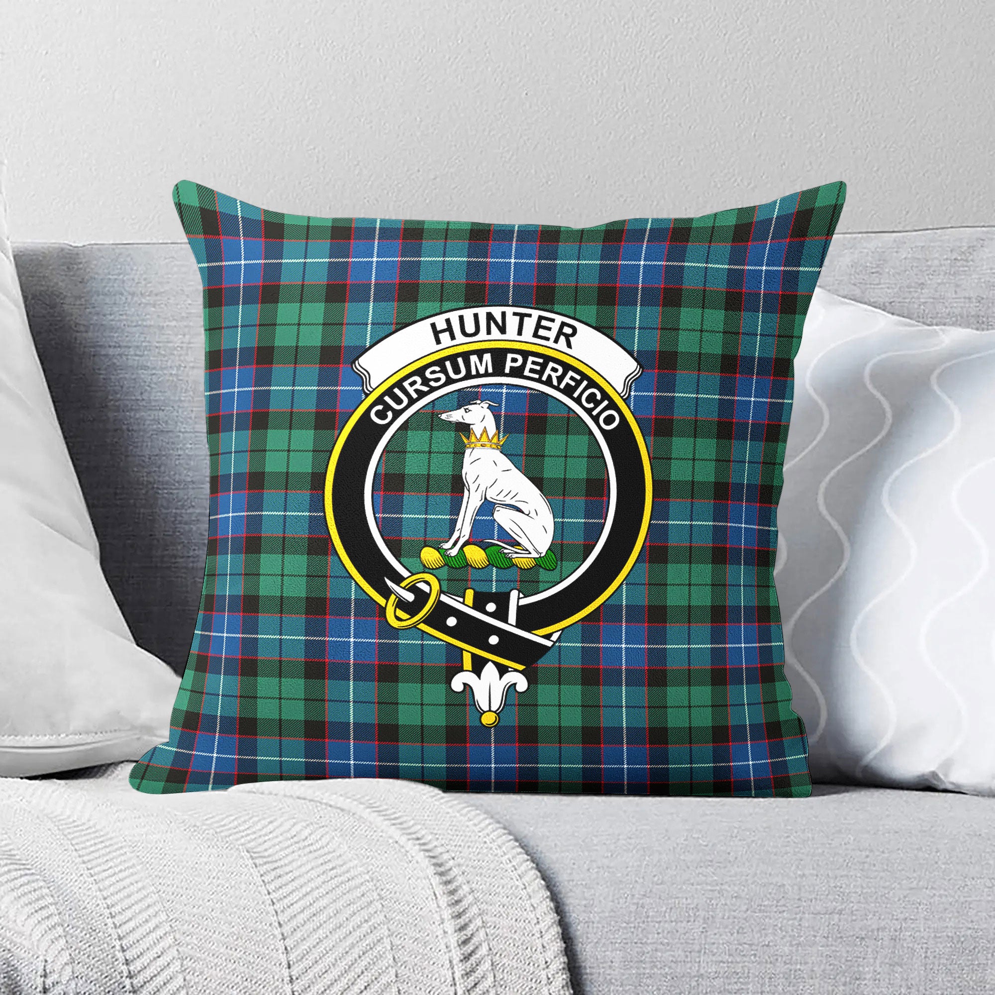 Hunter Ancient Tartan Crest Pillow Cover