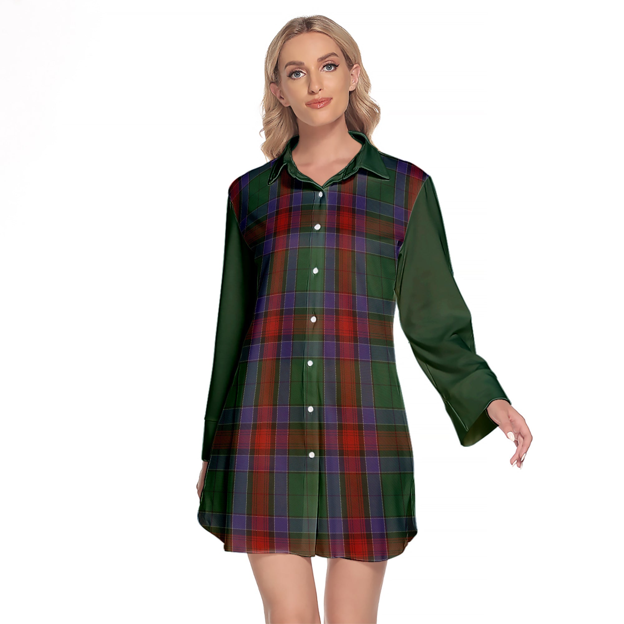 Jardine Dress Tartan Women's Lapel Shirt Dress With Long Sleeve