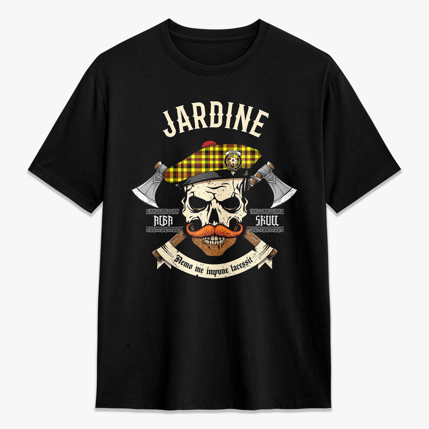 Jardine Tartan Crest 2D T-shirt - Alba Skull Style,