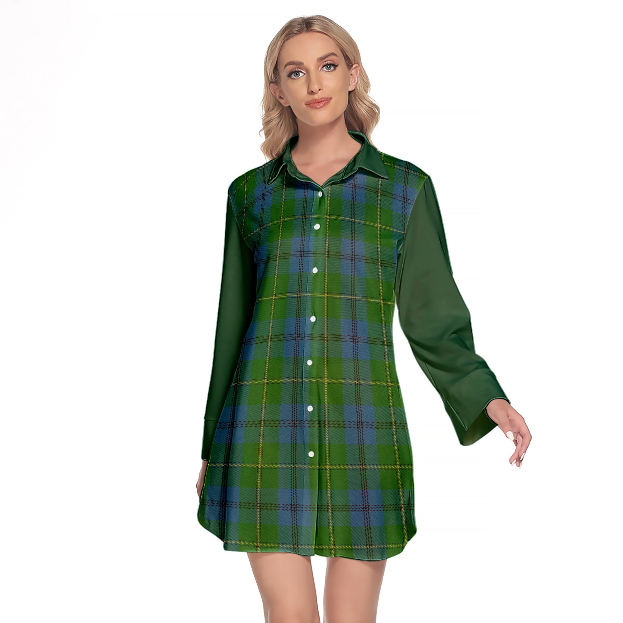 Johnston Tartan Women's Lapel Shirt Dress With Long Sleeve
