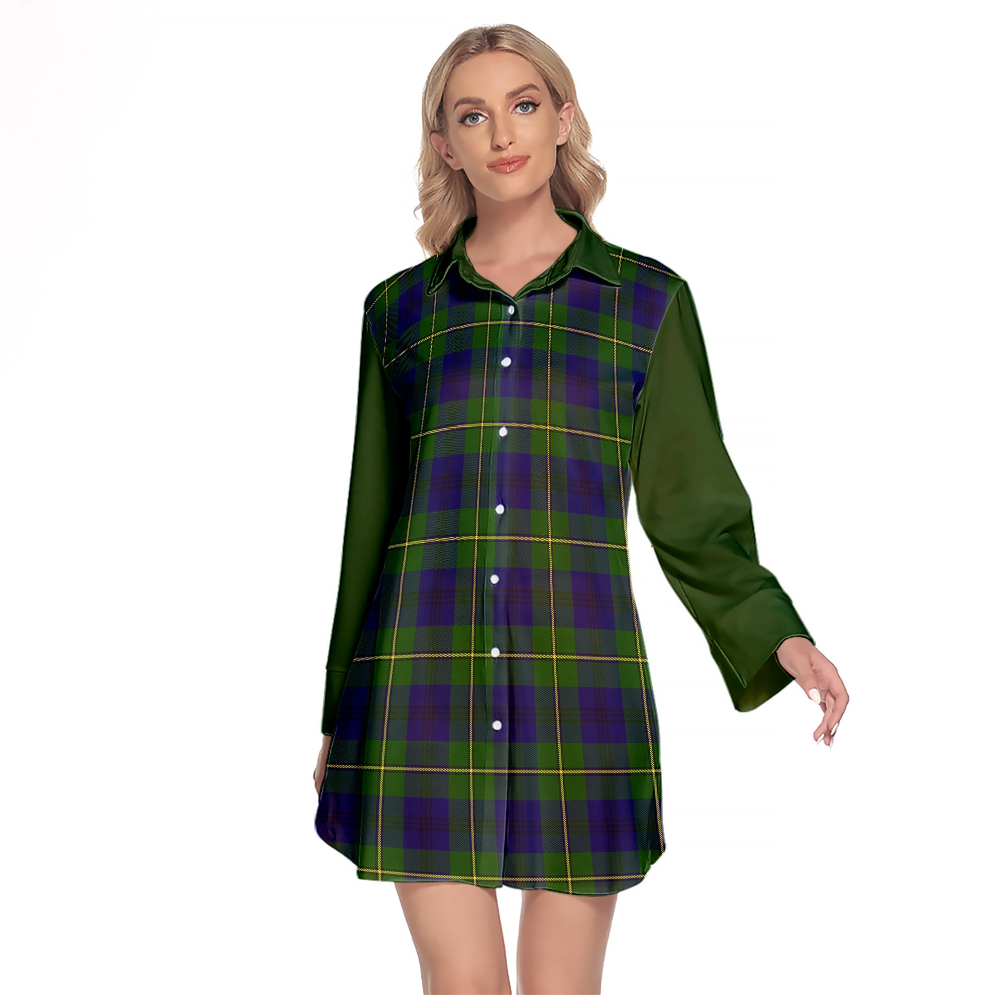 Johnstone Modern Tartan Women's Lapel Shirt Dress With Long Sleeve