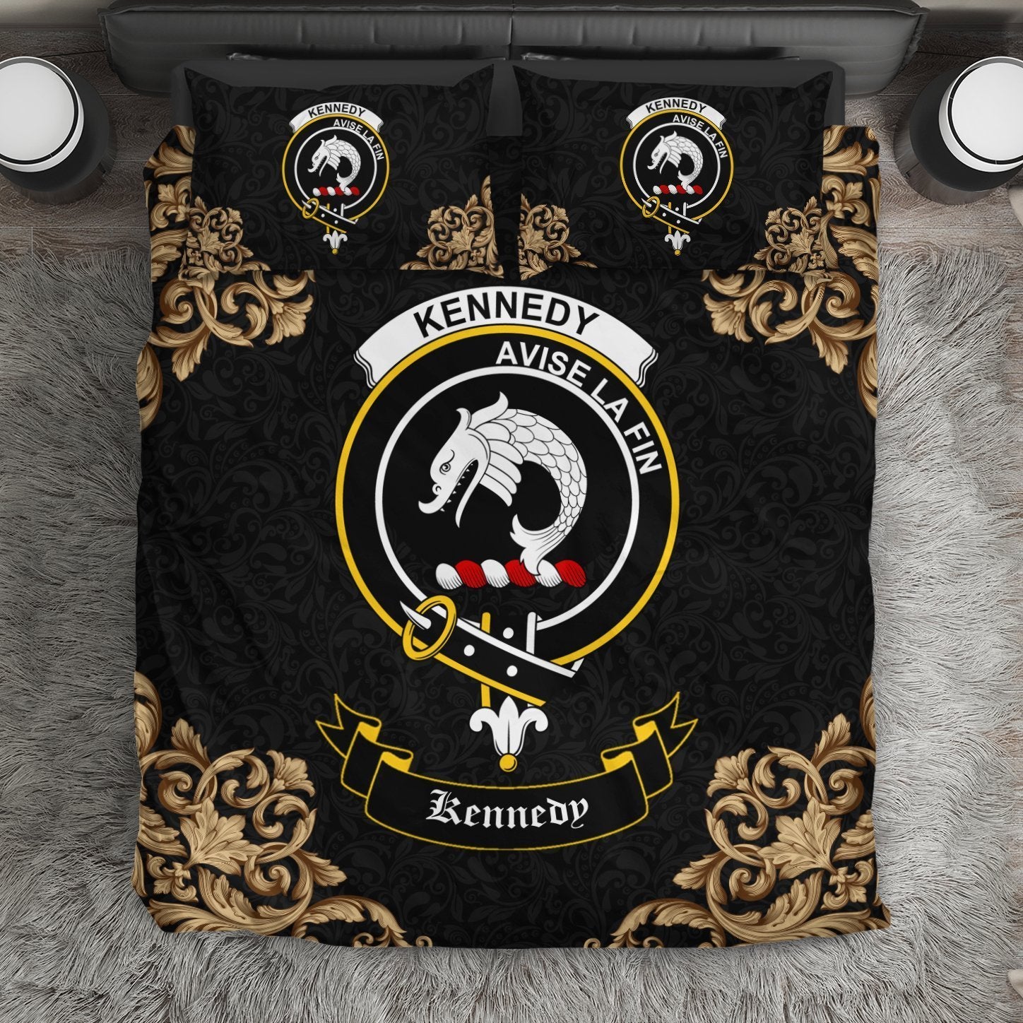 Kennedy Crest Black Bedding Set