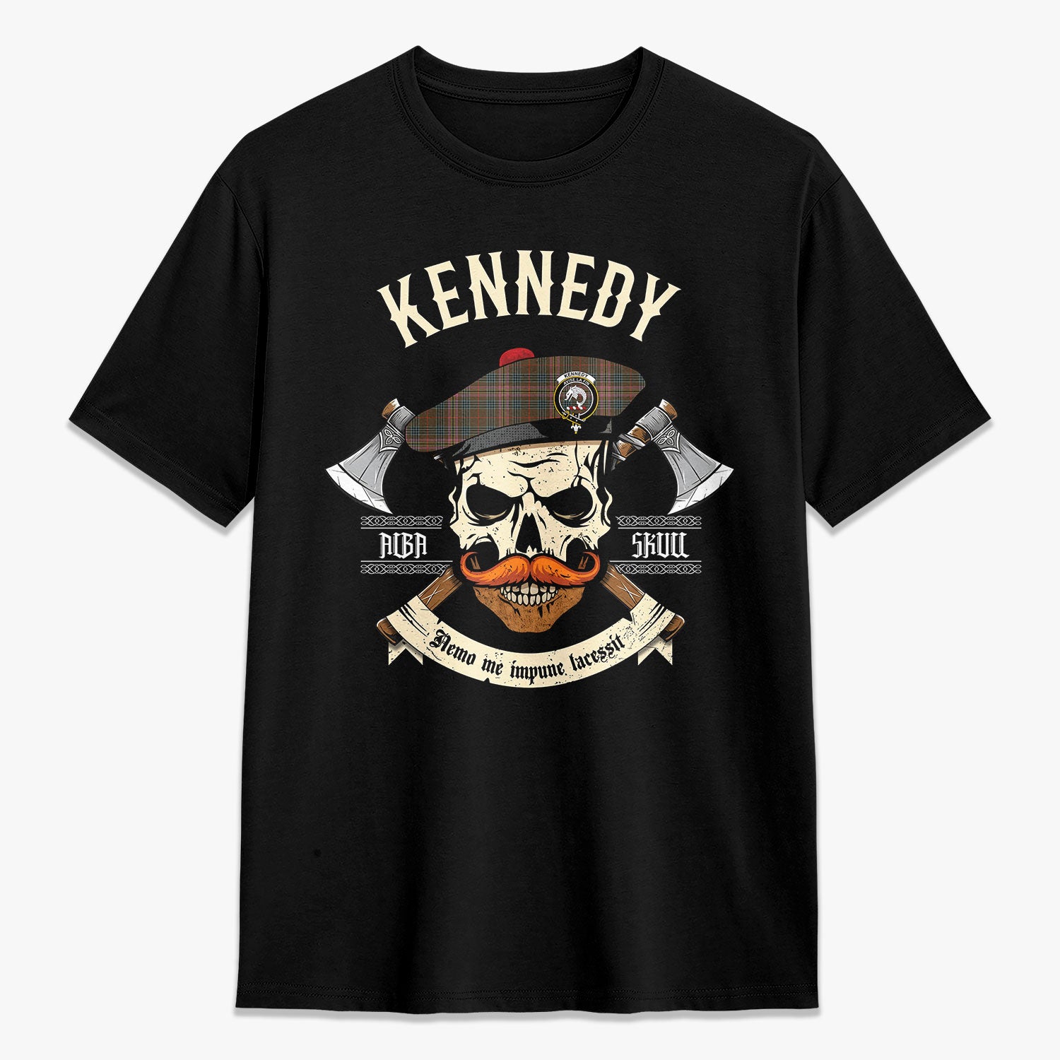 Kennedy Weathered Tartan Crest 2D T-shirt - Alba Skull Style,
