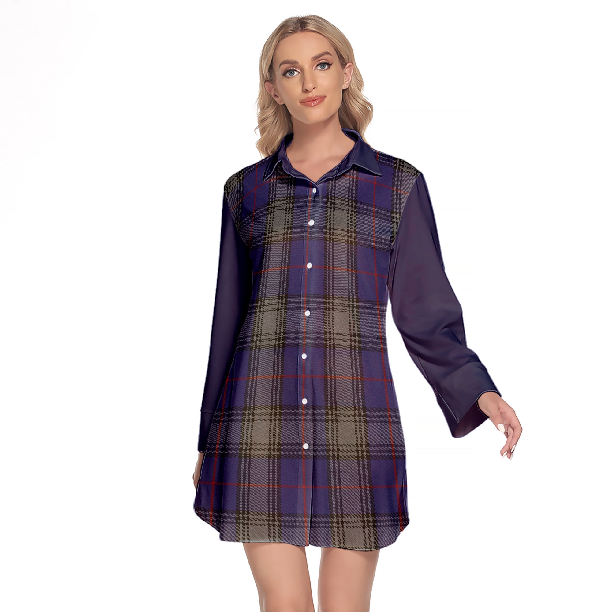 Kinnaird Tartan Women's Lapel Shirt Dress With Long Sleeve